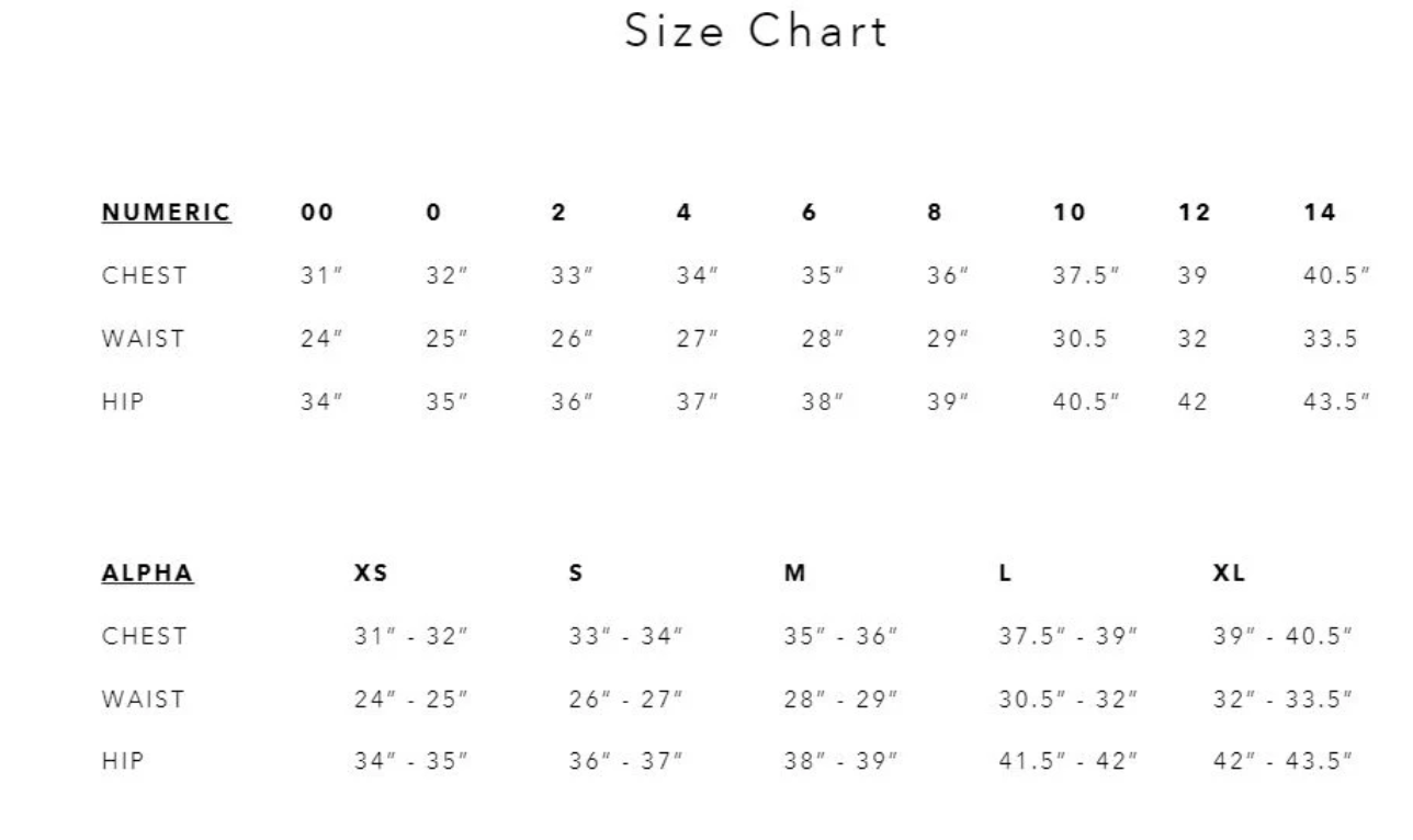 - Bust 32" Waist 25.5" Hips 33.5"