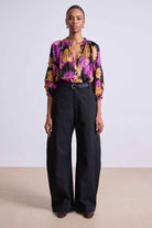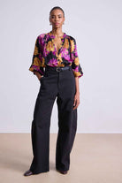 The Trini Top features a flattering ruffled neckline and elegant 3/4 blouson sleeves, all set against a bold floral print. Designed to turn heads with sophisticated ease, it pairs perfectly with tailored trousers for a polished, effortless look.