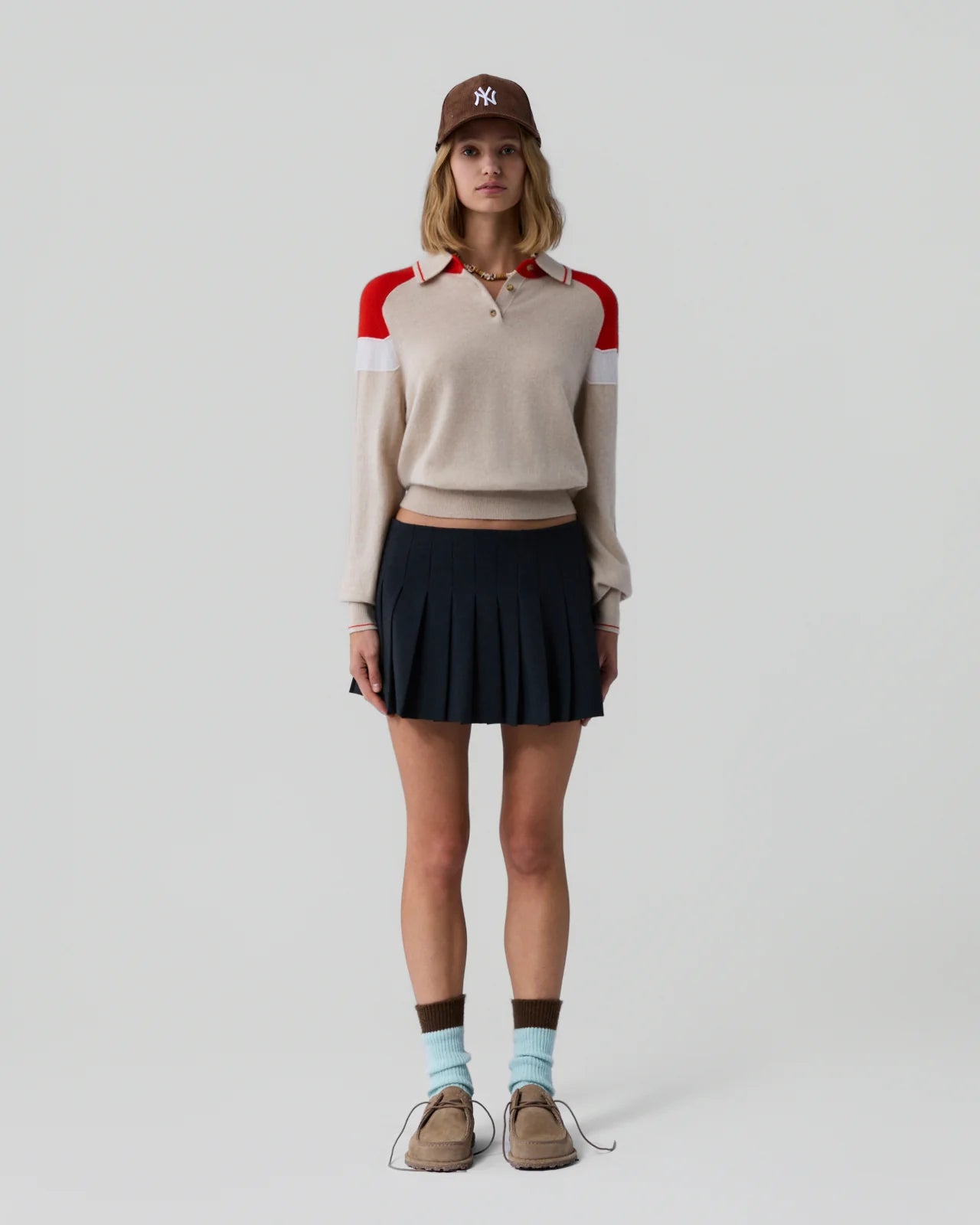 A fresh spin on everyone’s favorite polo, the Alpine Collegiate Polo adds bold color blocking for a modern, sporty edge. Crafted from lightweight 100% cashmere, this women’s cashmere polo sweater blends softness, structure, and understated style.
