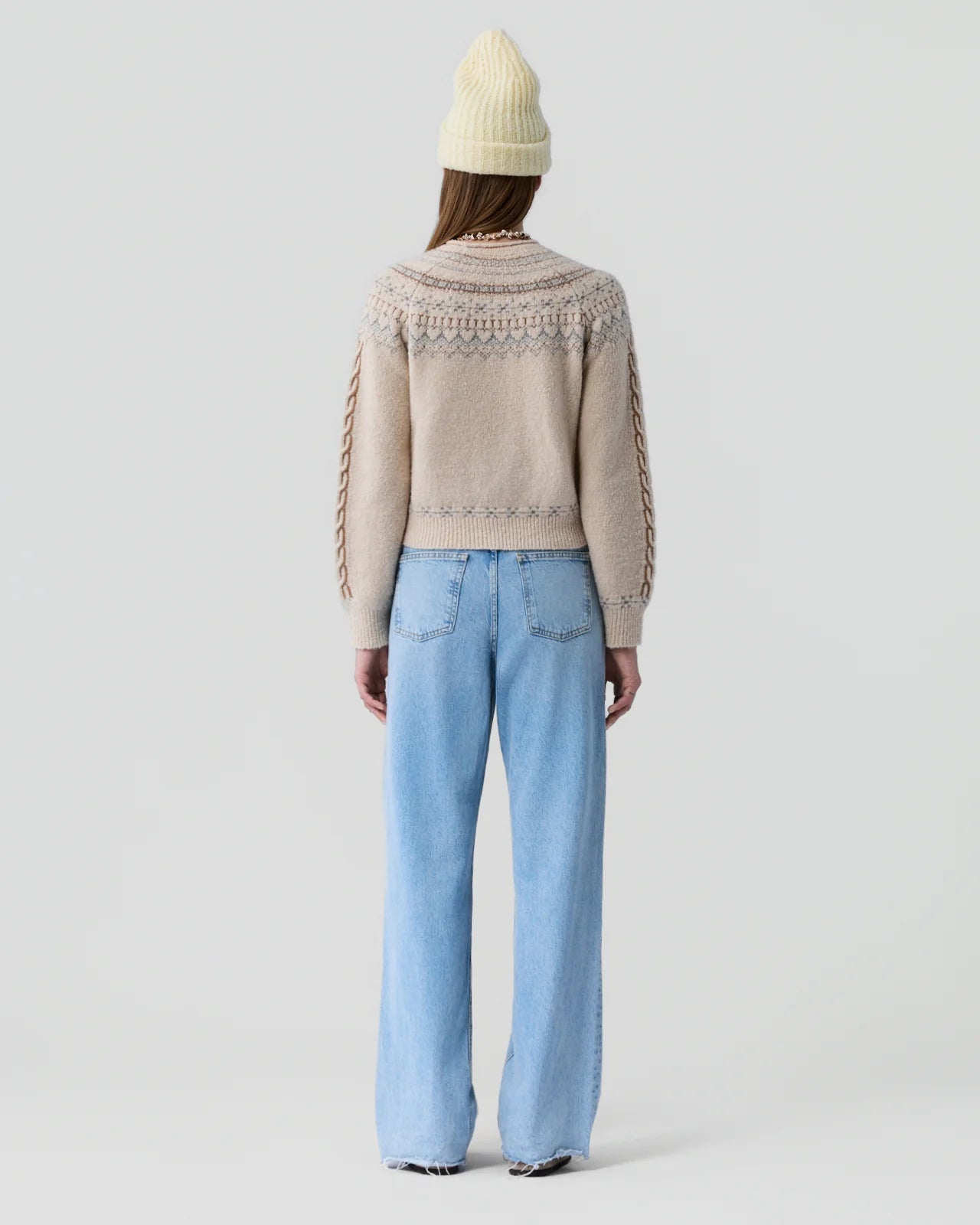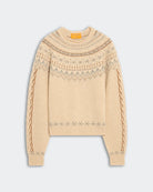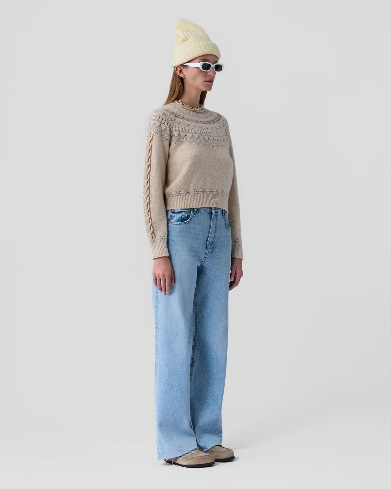 Crafted from a wool–cashmere blend and ultra-soft Cloud yarn, the Cloud Chalet Crew captures the charm of vintage alpine knits in a modern way. This women’s Fair Isle cashmere sweater has a slightly boxy silhouette that blends nostalgic patternwork with soft, cozy texture.