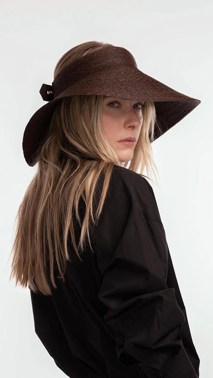 Janessa Leoné Birdie Wide Brimmed Raffia Visor - Chocolate
