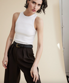 Meet the tank that started it all. Luxe ribbed cotton, a delicate racerback, and collarbone grazing neckline have turned this tank into our best selling top ever. Wear it alone, layer under your favorite cardigan (or the Everything Shirt), wash, rinse, repeat. It's just that good.