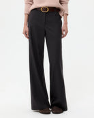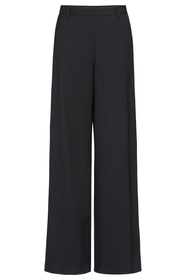 Mid-rise, flat front, straight leg suit trousers in stretch wool suiting. This fabric is a viscose/wool blend with a bit of stretch for comfort. The Downing is fitted at the hip and relaxed through the leg. Complete with side pockets, back welt pockets, concealed zip-fly and hook and eye closure.