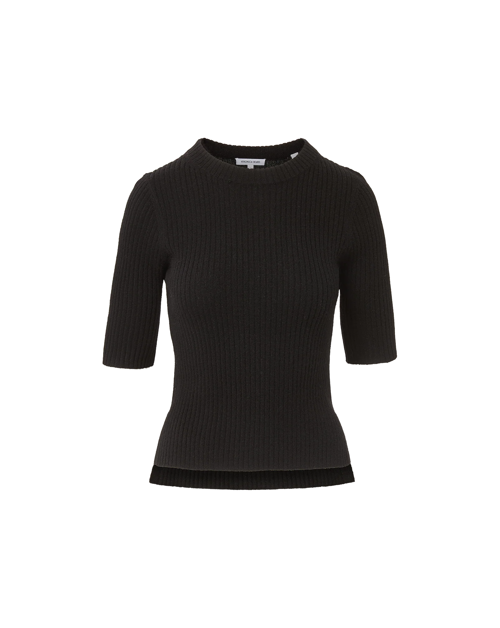Veronica Beard Emil Cashmere Pullover Ribbed Half-Sleeve Sweater - Black