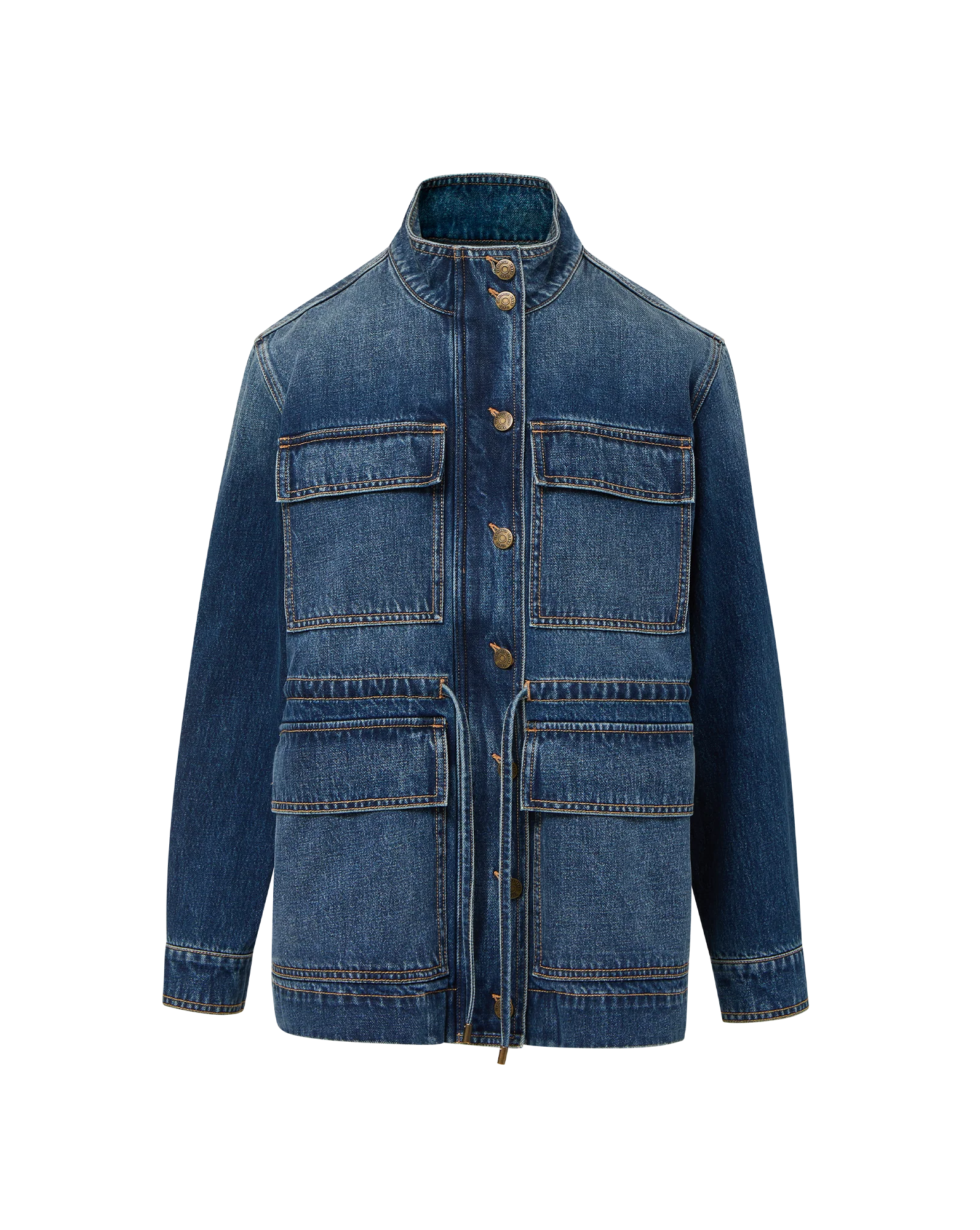 The anorak jacket, reimagined. Expertly crafted from our new heavyweight Dream Denim—a more structured update to our softest, most comfortable denim—the Truman features adjustable waist drawstrings for a defined fit. A hidden zipper sits beneath a full button placket, creating a mock neck when fully fastened. Completed with four flap cargo pockets and a back storm flap, it pairs effortlessly with wide-leg jeans for a modern take on double denim.