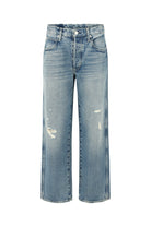 This mid rise, relaxed, cropped, straight leg jeans give you that effortlessly cool silhouette. If you are a fan of our best seller, Billie, but craving a more low slung slouchy look, these will become your new favorite pair. Subtle distressing throughout. Denim hem. Button fly.