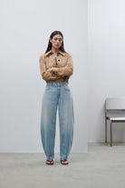 - Barrel fit / mid waist / cropped leg