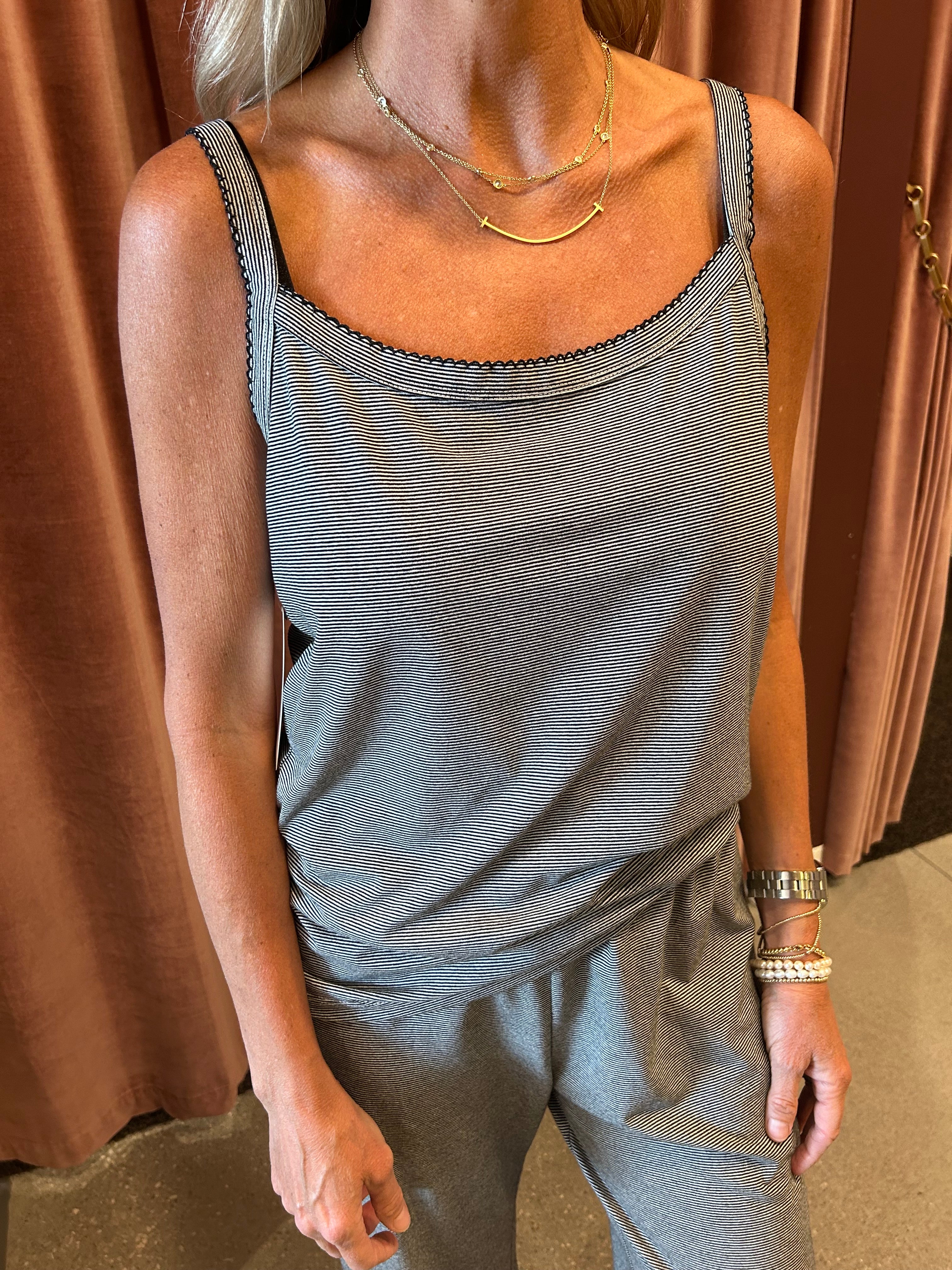 Donni The Jersey Stripe Spaghetti Tank - Jet Stripe