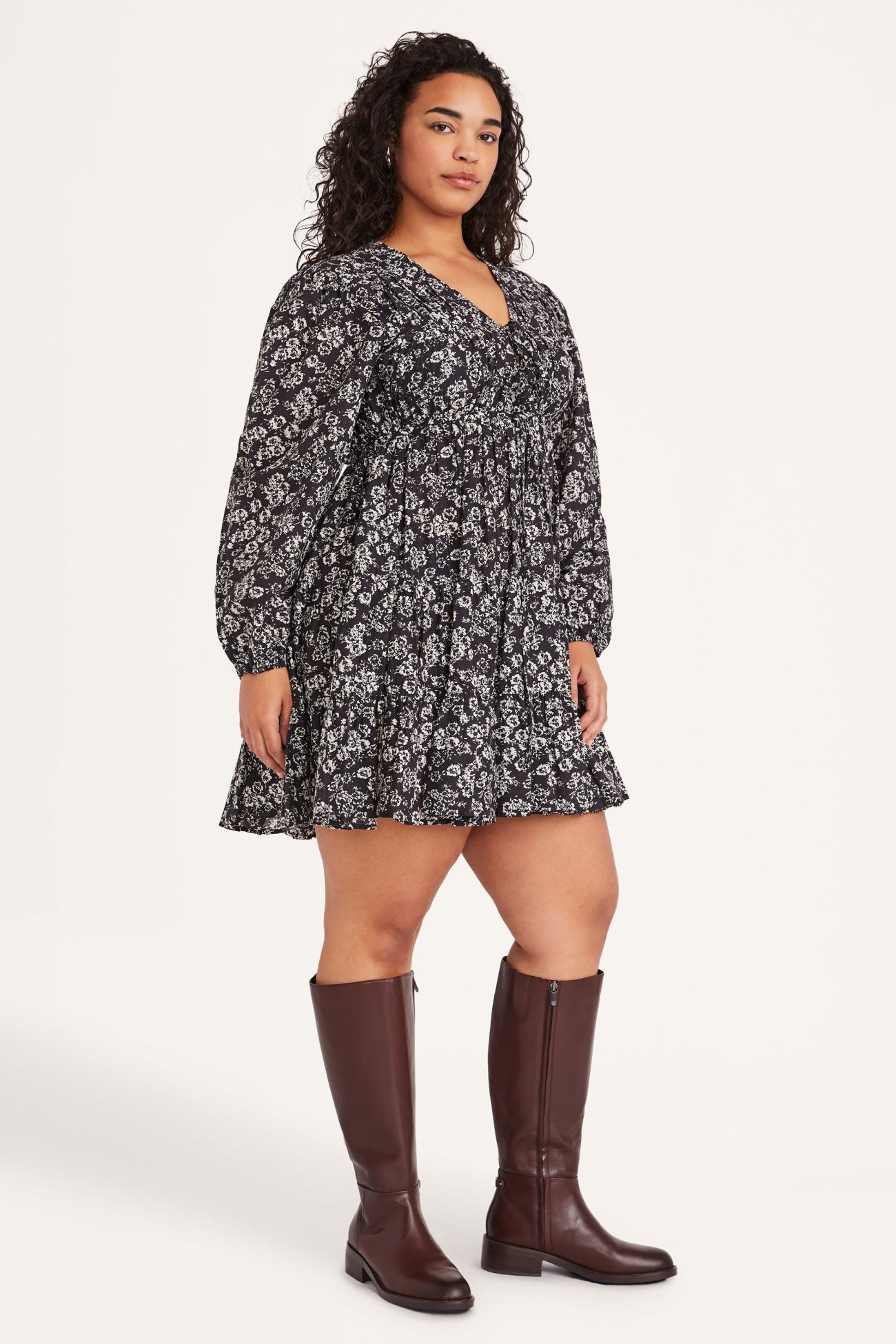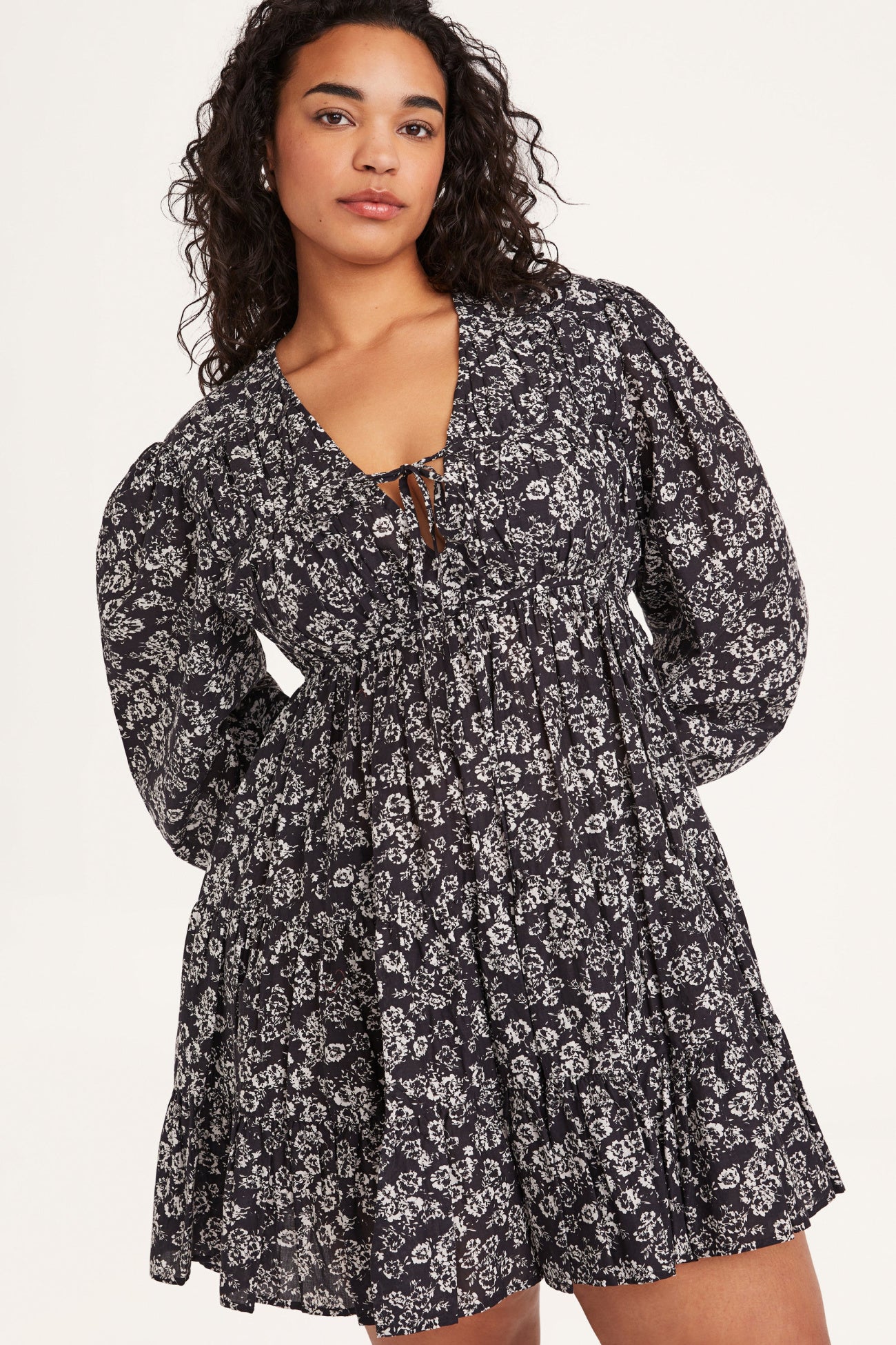 Merlette Lasse Print Dress - Black Stamped Floral Print