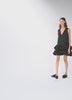 The Alberta pearl tank dress features a V-neckline and a tiered skirt finished with a soft bubble hem. Pearl beading throughout adds a touch of delicate embellishment and charm to its mini silhouette.