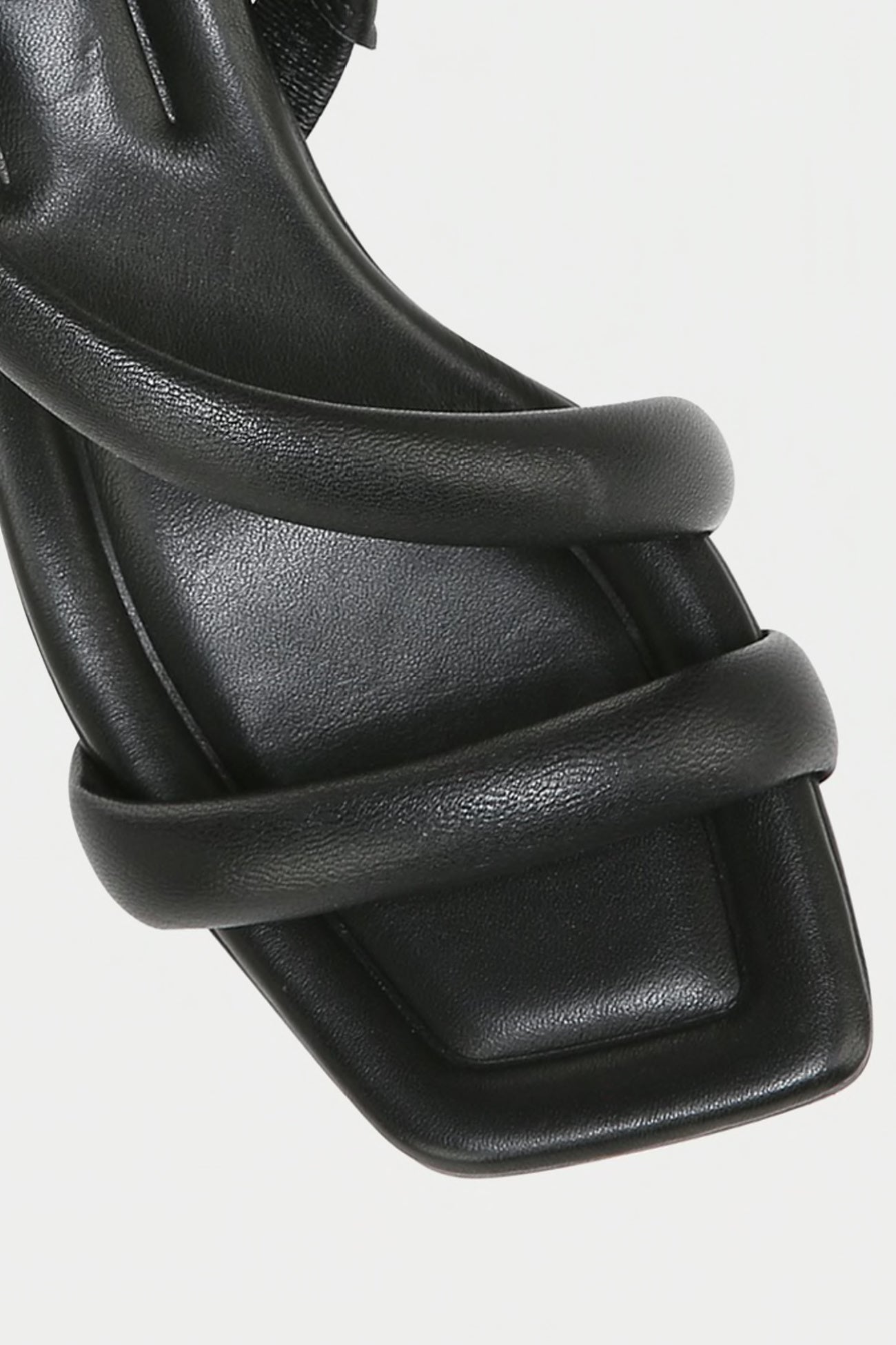 Plush leather straps of leather encircle the foot in our luxuriously pared-back kitten heel sandal. Tubular leather, featuring an asymmetric strappy design