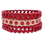The Coral Stack Bracelets are hand-crafted using gold and coral beads. We offer this color in the full circle stud, the cuban and the wheat. We carefully select each color pallet to strike a style for both everyday and special occasions.
