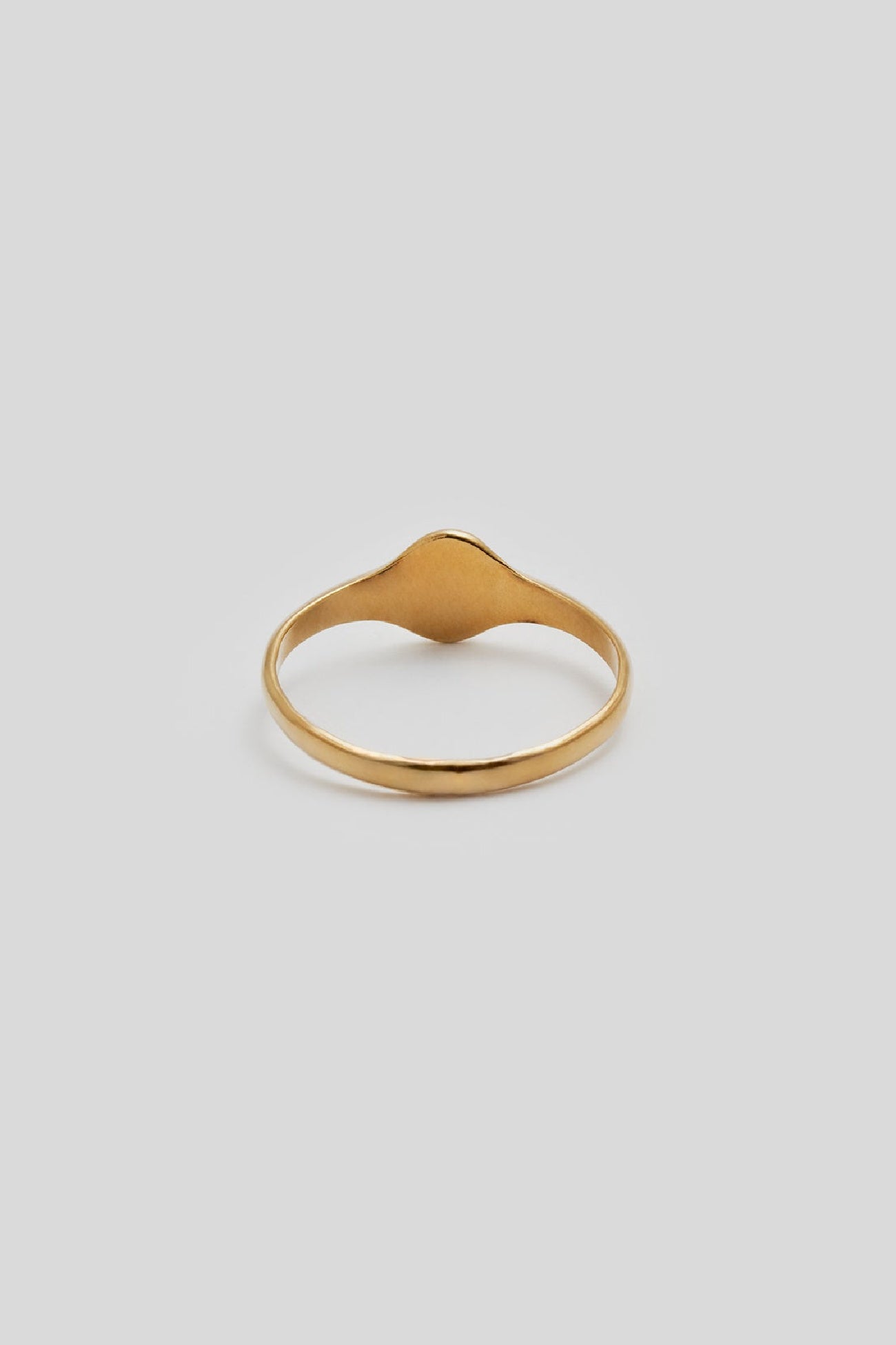 A little something for your stack. Delicate but not too dainty the Mini Oval Signet Ring is crafted from 14Kt gold with an elegant oval signet face. It looks good on every finger but makes an exceptionally chic exclamation point as a pinky ring.