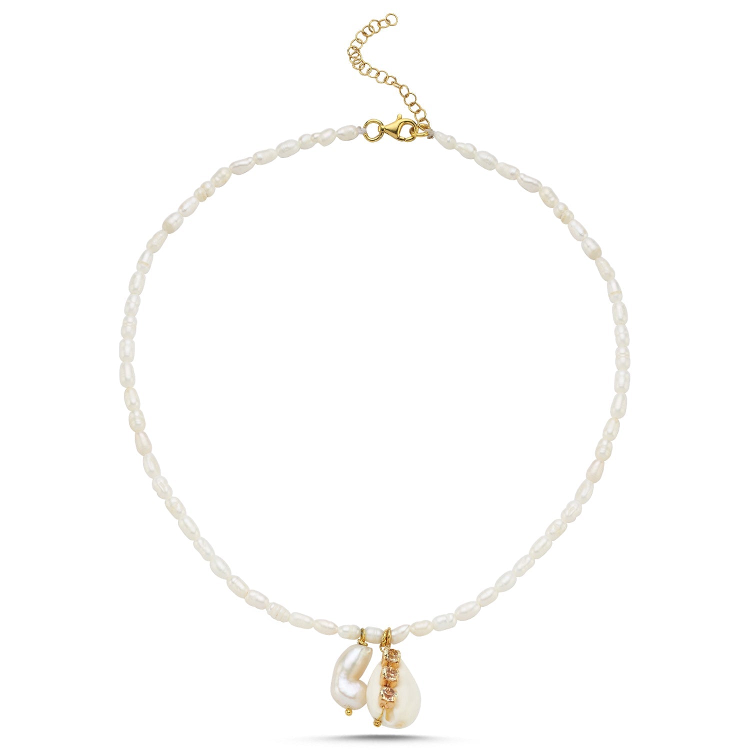 - This exquisite piece features beautiful sweet water pearls paired with a delicately handcrafted shell.