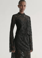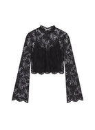 The Margot Top is a modern interpretation of the lace top. Cut from archival French lace with a botanical-inspired pattern, this long sleeve feels refined yet forward. Finished with scalloped edges and a built-in camisole, it’s a wearable statement for cocktails, dinners, or evening events.