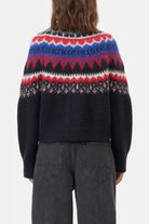 Our cropped zip cardigan features a regular fit with cropped proportions. Made in a jacquard knit with a custom-developed pattern blending three Italian yarns, adding texture and depth for a one-of-a-kind look. With a crew neck, zippered front, and ribbed trims.