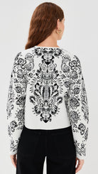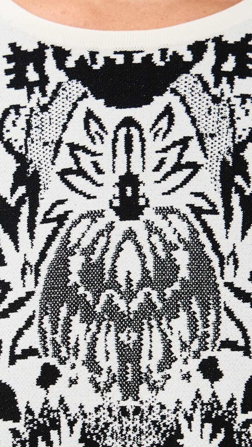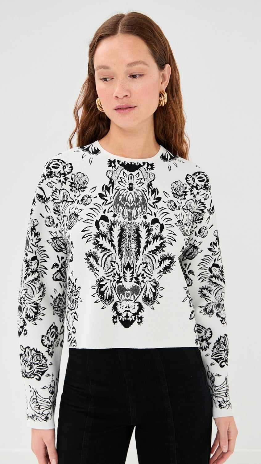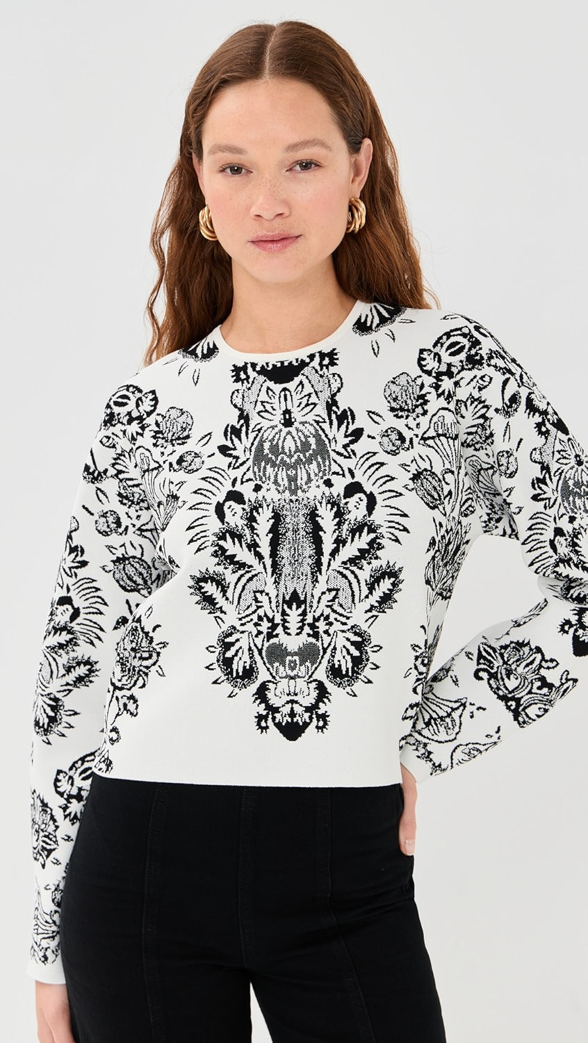 The Elisa Pullover is a rich tapestry of vine-like, botanical motifs knitted from stretch jacquard. The timeless, black-and-white palette lends this crewneck optimal versatility.