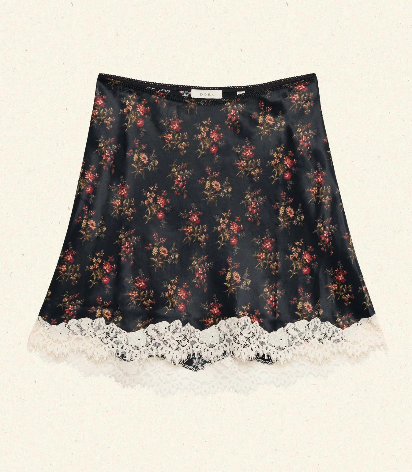 Crafted from soft crepe-back satin in our Victorian-inspired Fleur du Palais floral, the Giulietta is a bias-cut mini skirt, finished with delicate scalloped elastic at the high waist and contrast floral lace along the hem.
