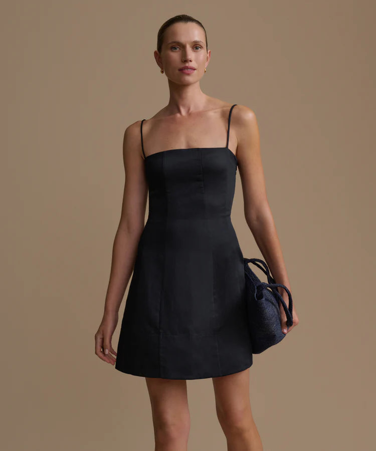 Fashioned in a subtly textured, slubby linen blend with a satin-like finish, the Coast Dress balances subtle structure with unparalleled ease. The straight neckline and spaghetti straps create a clean, elevated silhouette, while flattering body seams and a fitted waist with a gently flared skirt give shape without restricting movement. Wear it solo for warm days, layer it over a tee, or dress it up for weekend outings. The Coast Dress adapts seamlessly to whatever the day brings.