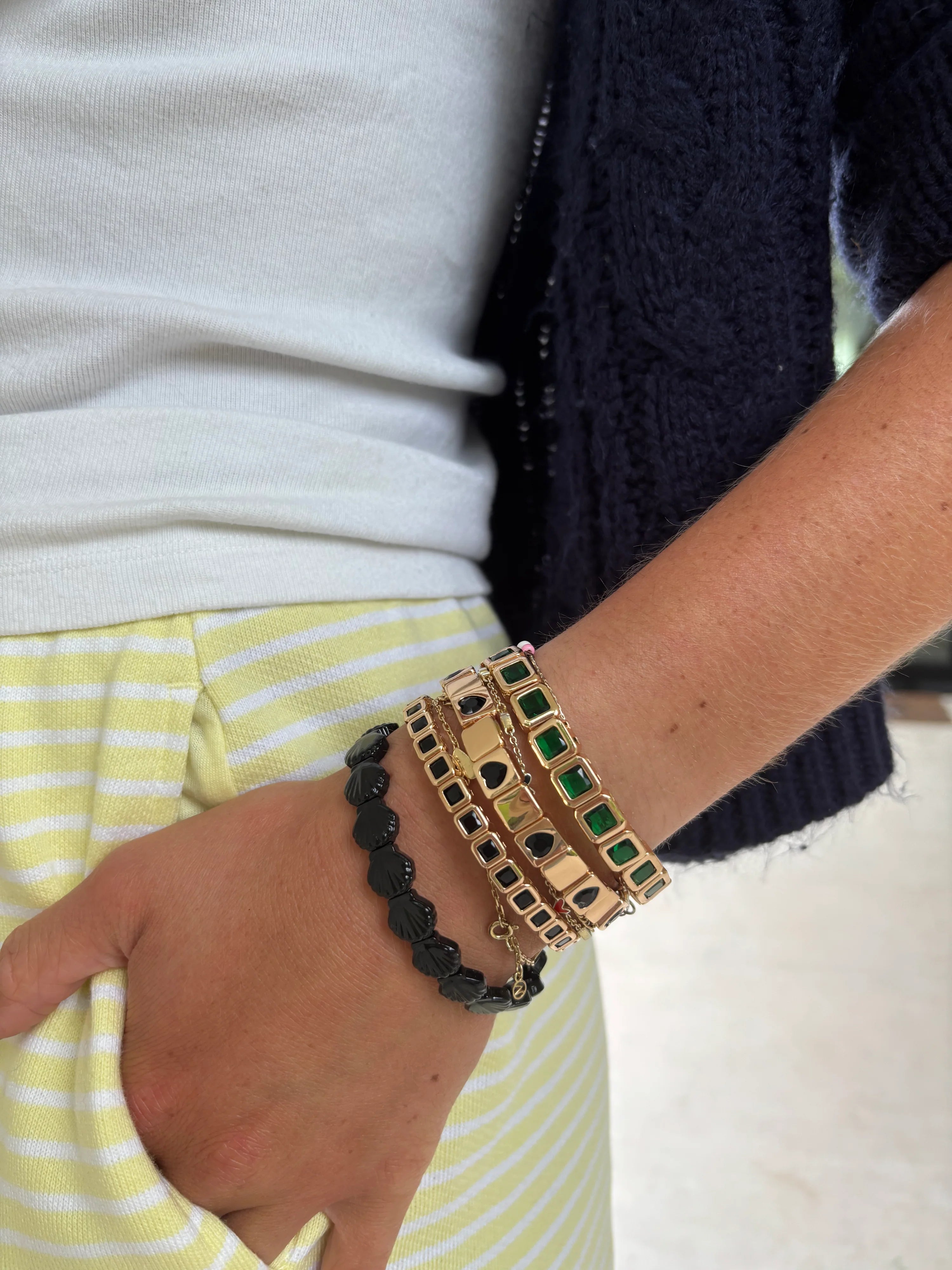 Our Mini Square Gem Bracelet consists of small cz stones embedded in metal tiles. The perfect statement to take you from day to night! Each bracelet is 7" in length and a slip-on-style. All of our single bracelets are designed to be stacked or they can be styled to wear alone.