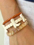 Our Crystal Vision Bracelet is hand-crafted using the perfect gold square beads with a cz diamond shaped stone. We carefully select each color pallet to strike a style for both everyday and special occasions. This bracelet is 7.2" in length and is a slip-on-style. All of our single bracelets are designed to be stacked or they can be styled to wear alone.