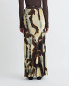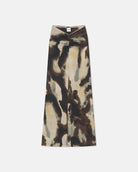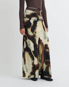 Nanushka’s Cheyen Skirt merges ease with structure. Crafted from mesh jersey, this ruched maxi design features a front slit that enhances movement. In a watercolor sage hue offering versatile sophistication and everyday wearability with a luxurious edge