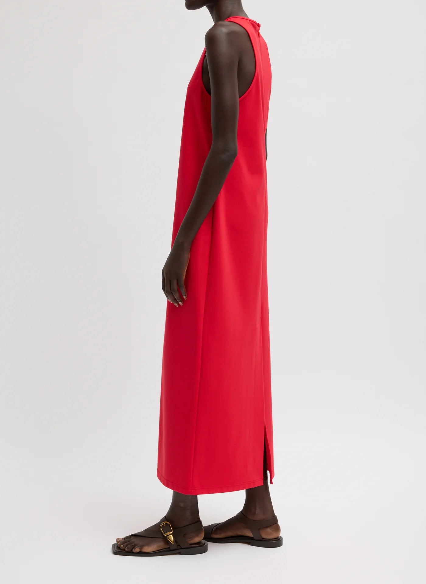 Designed in an Italian super-stretch interlock knit engineered to retain its shape, the Sleeveless Dress features a clean silhouette with a back zipper closure for ease. Comfortable enough for all-day wear yet polished enough for evening, it transitions easily from casual styling with sandals to more elevated looks with heels and tailored layers, supporting repeat wear across contexts.
