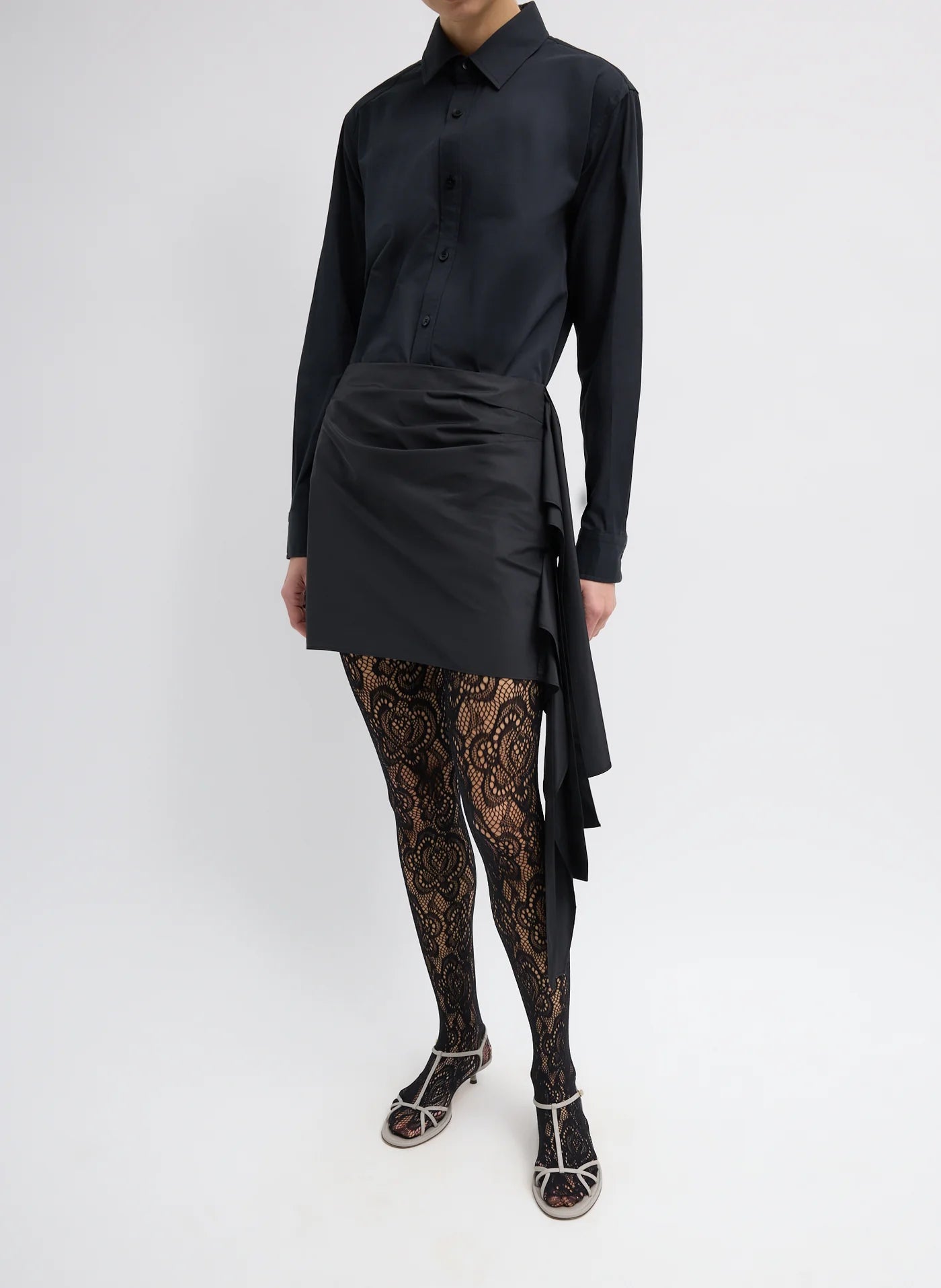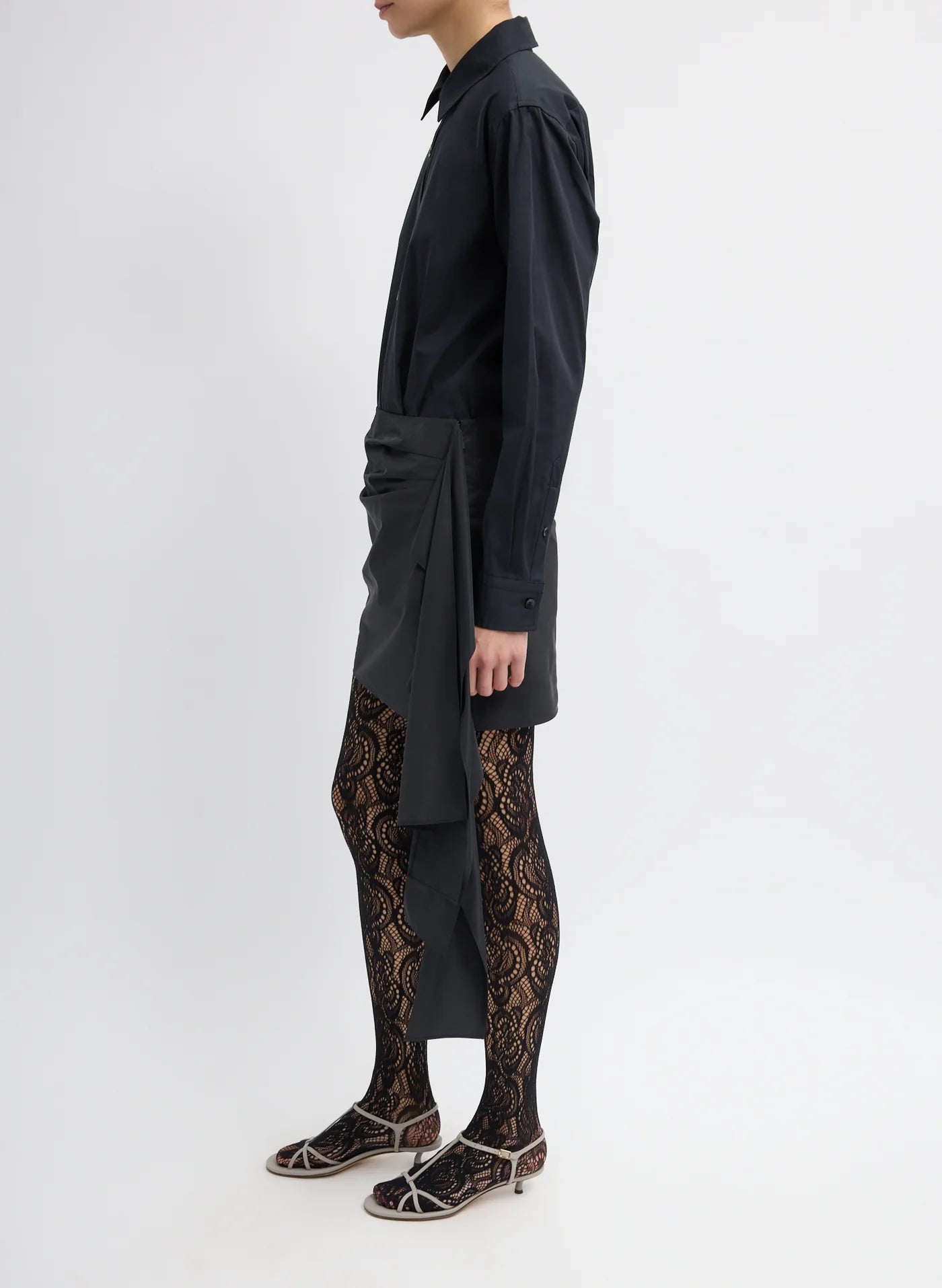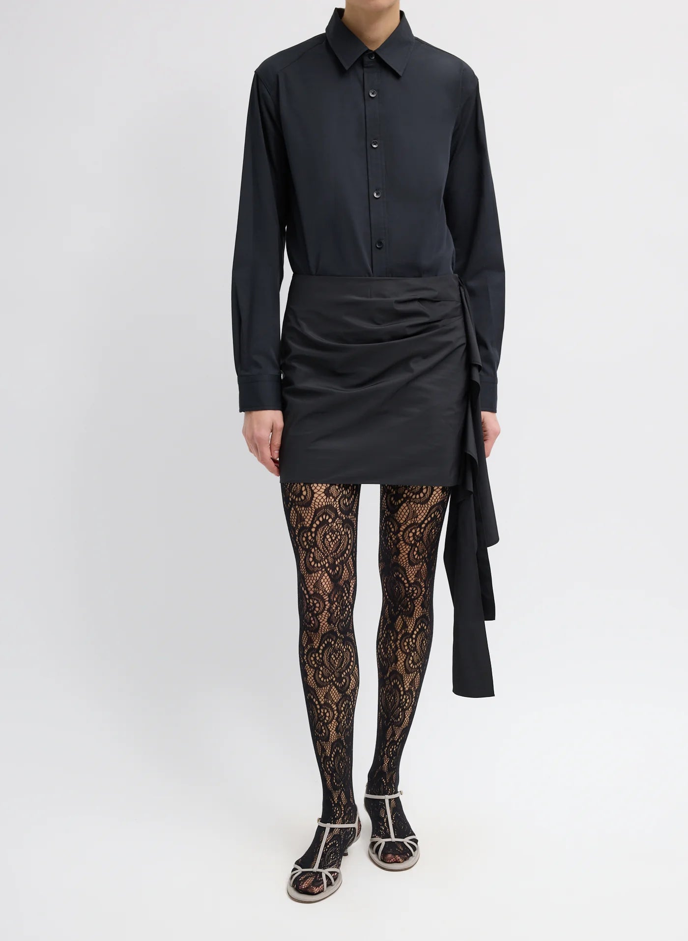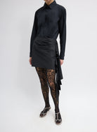 Cut from Italian Sporty Nylon, this skirt brings lightness and durability with movement and dimension. Tonal ribbon along one side adds subtle impact to the clean silhouette. Equally at home with Fundamentals or with novelty knits, it balances polish with chill. A Ring 1 piece designed to dress up or down without ever feeling precious.