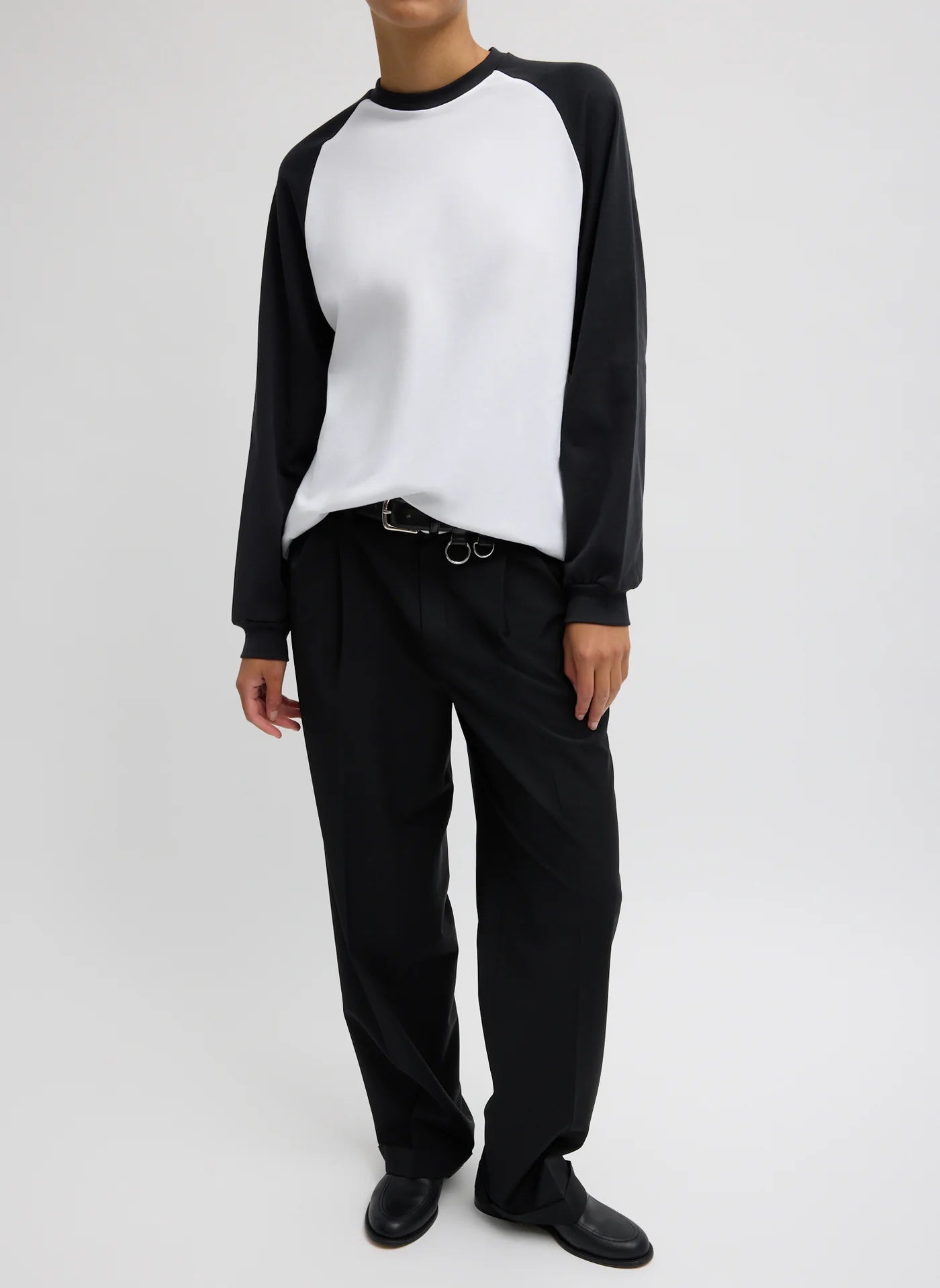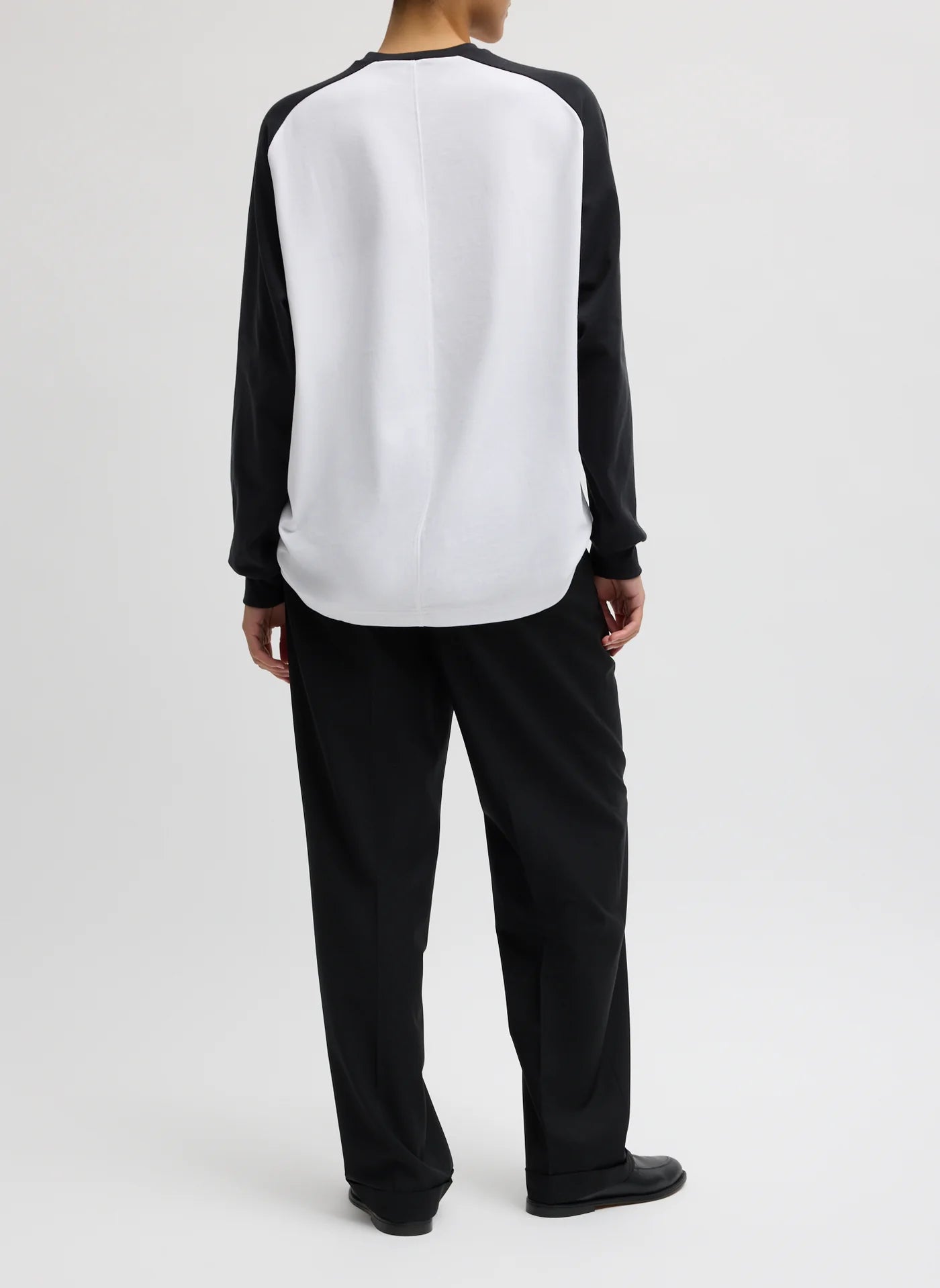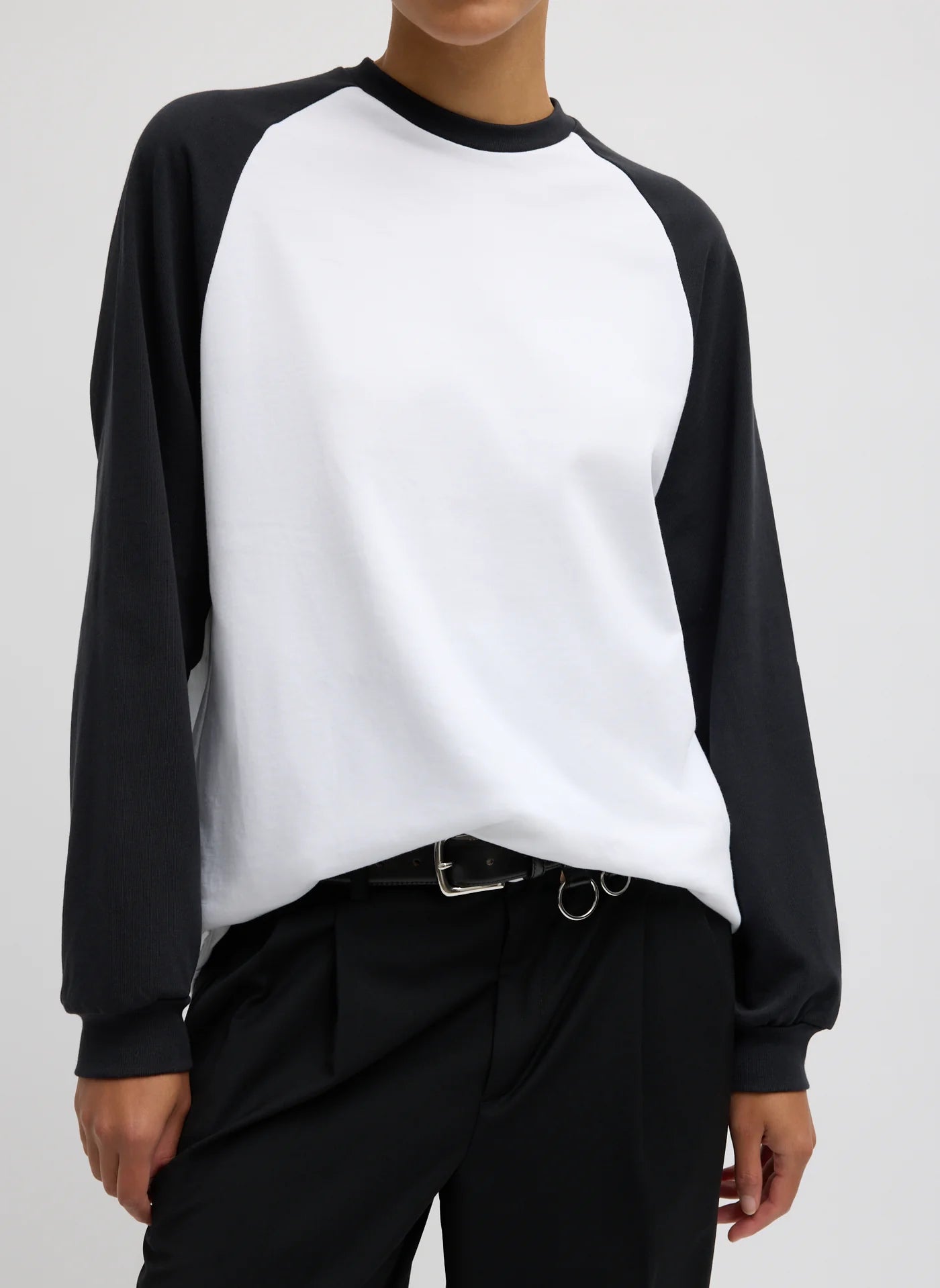 An elevated nod to vintage athletic wear, The Perfect T Sculpted Baseball T is designed to give you that slouchy, lived in feel. Cut from 100 percent cotton in a structured medium weight jersey with a soft hand feel, this style allows you to navigate antonym dressing with ease. The high sporty neckline and contrasting sleeves, it deliver instant outfitting across the CP scale. A true Ring 1 or 2 staple, it serves as a foundational layer for a Creative Pragmatist wardrobe where function and intention are always in play.