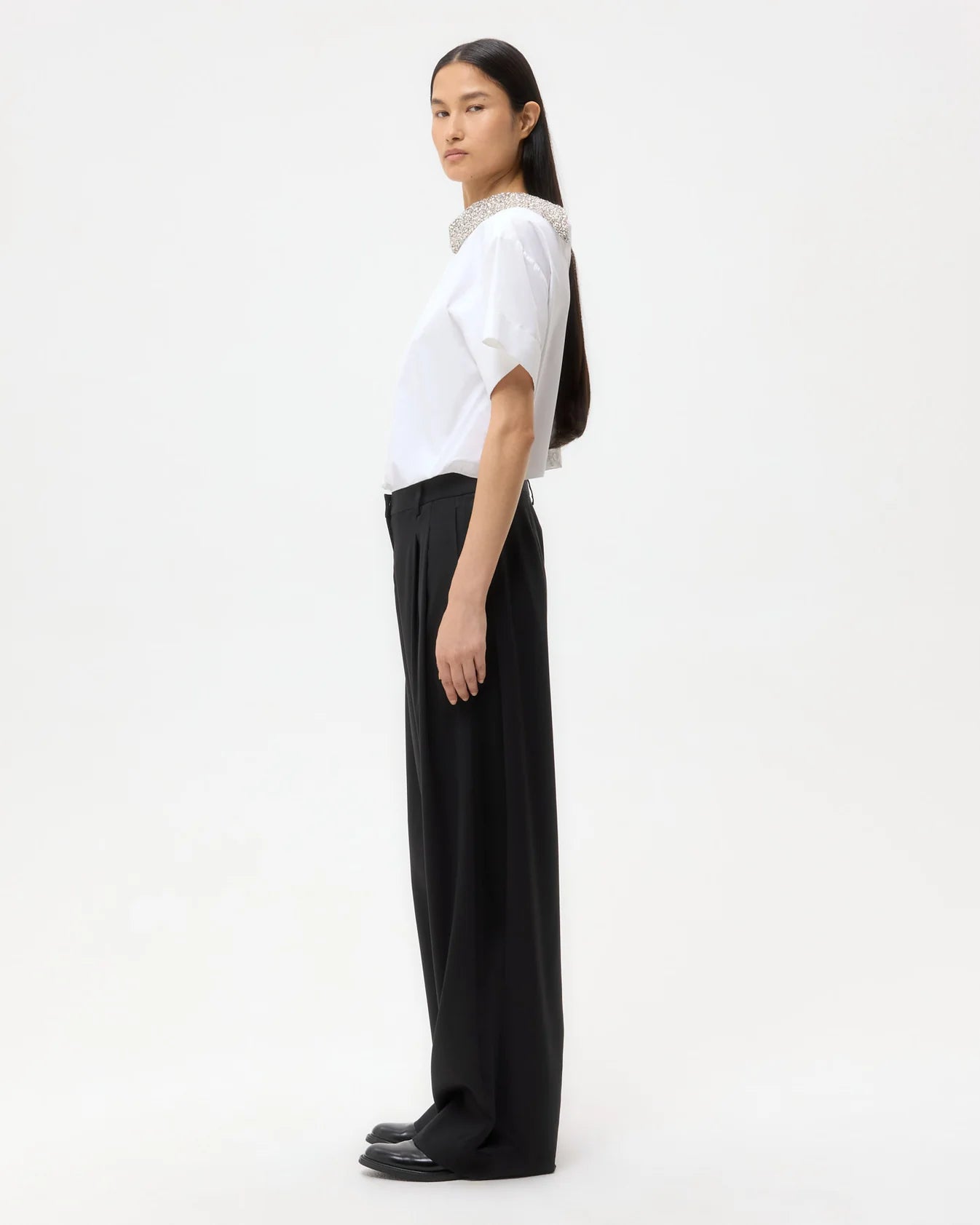 TWP Forever and Always Reversible Shirt With Crystal Collar - Super Compact Poplin White