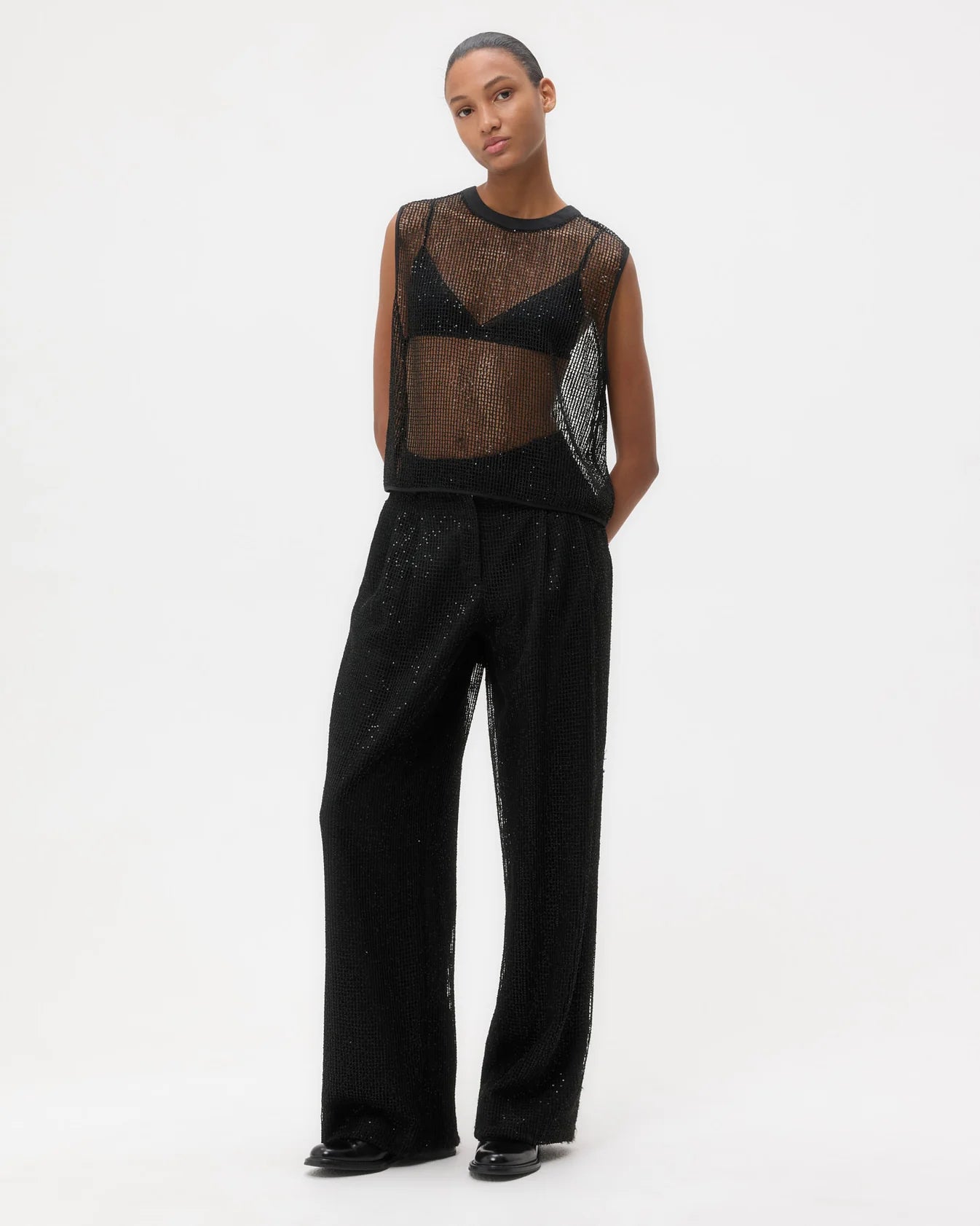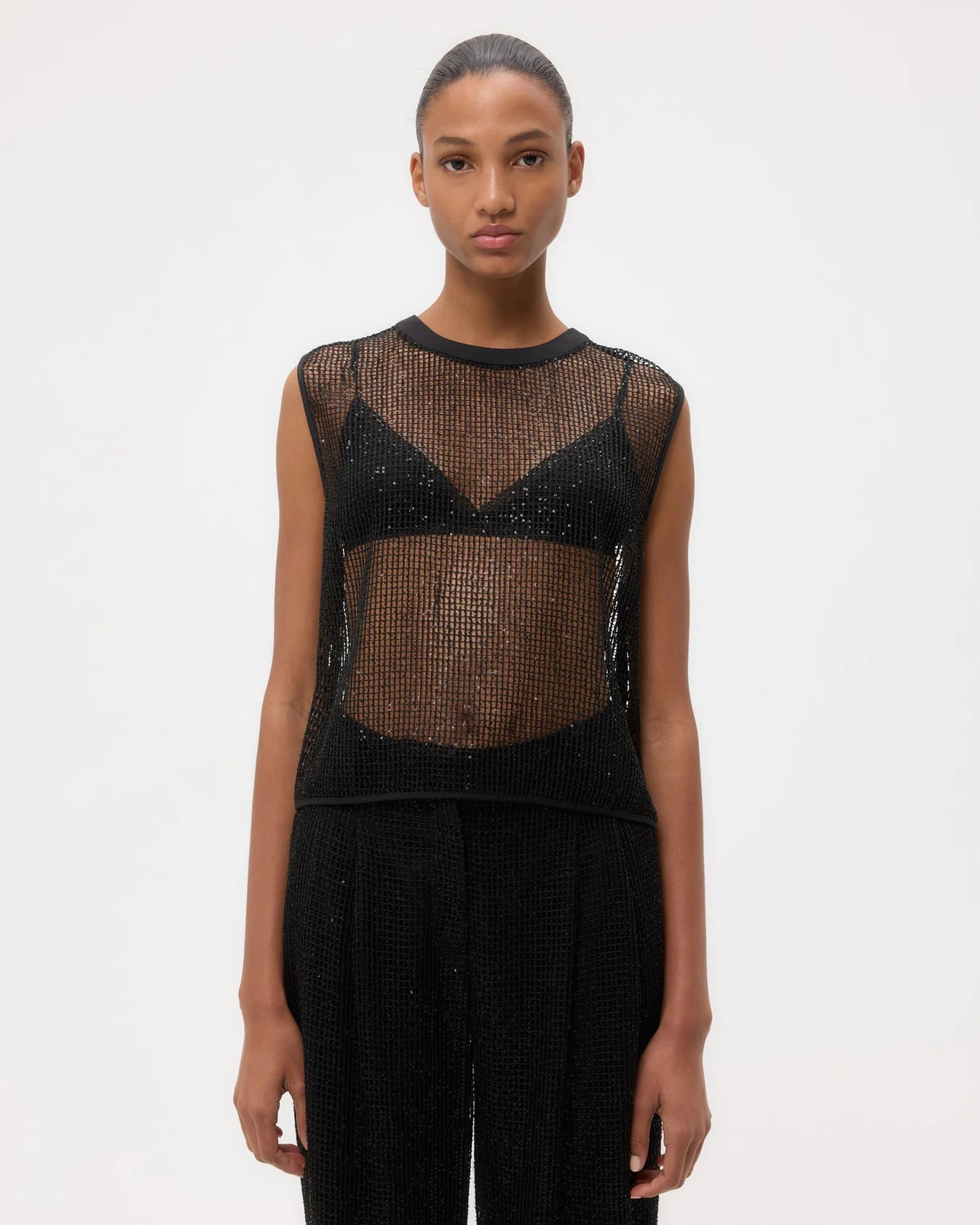 TWP Short Muscle Tank in Mini Sequin Netting - Black