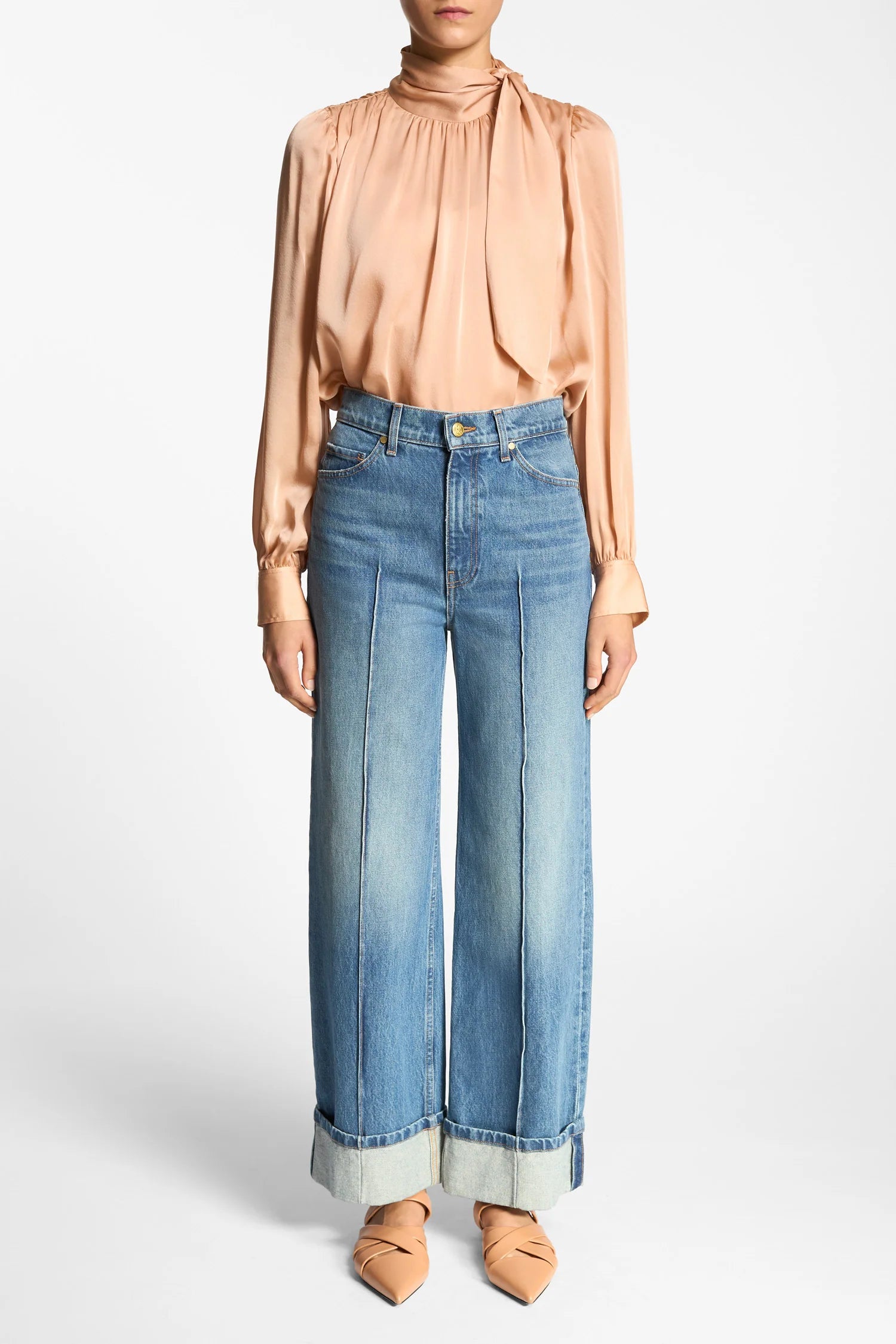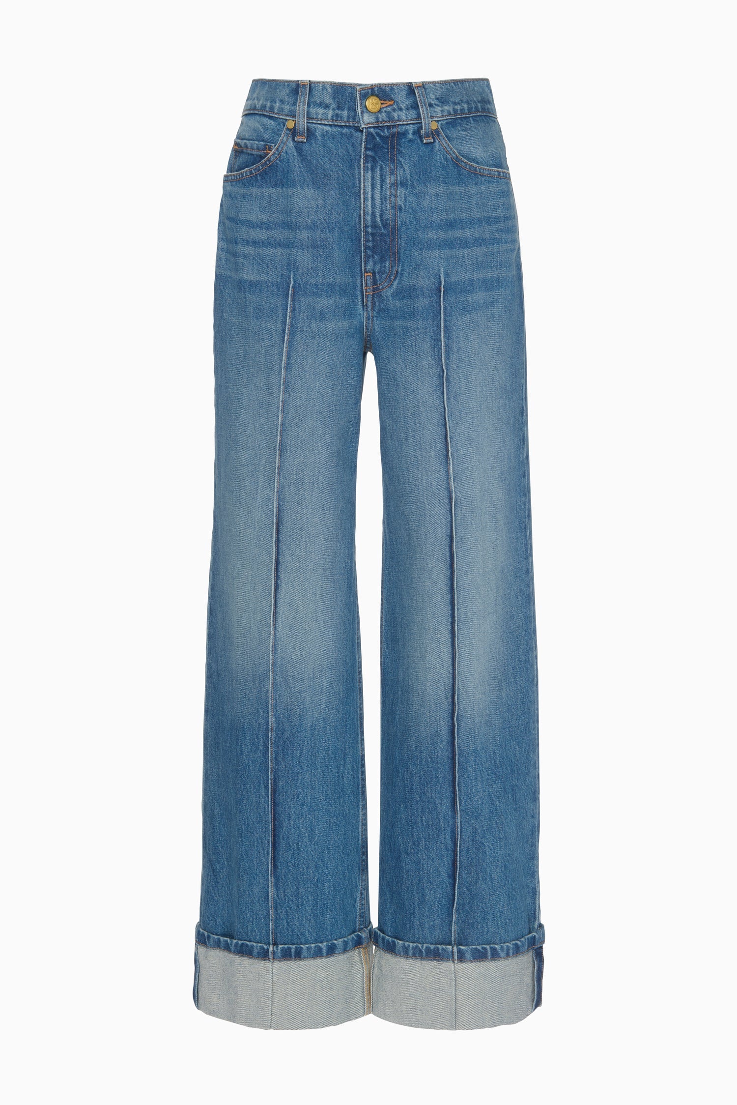 The bestselling Genevieve Jean arrives in our Danube wash that’s sanded and whiskered to create a coveted, lived-in feel. Crafted from premium denim, this slightly wide-leg style is accented with seams down the center front and exaggerated folded cuffs for an elevated essential.
