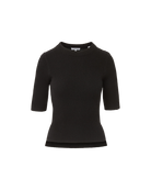 Veronica Beard Emil Cashmere Pullover Ribbed Half-Sleeve Sweater - Black
