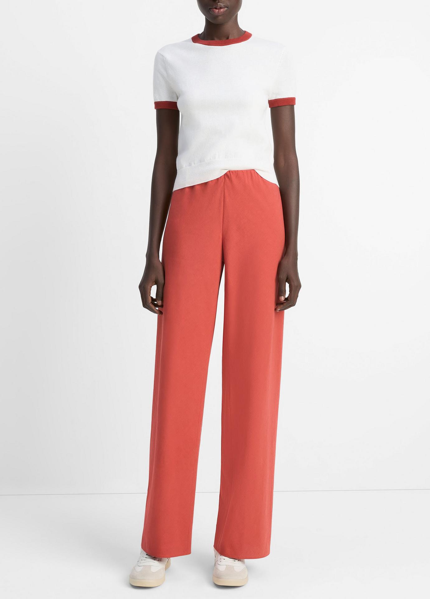 Vince Cotton Ringer Sweater T-Shirt - Off White/Brick Rose