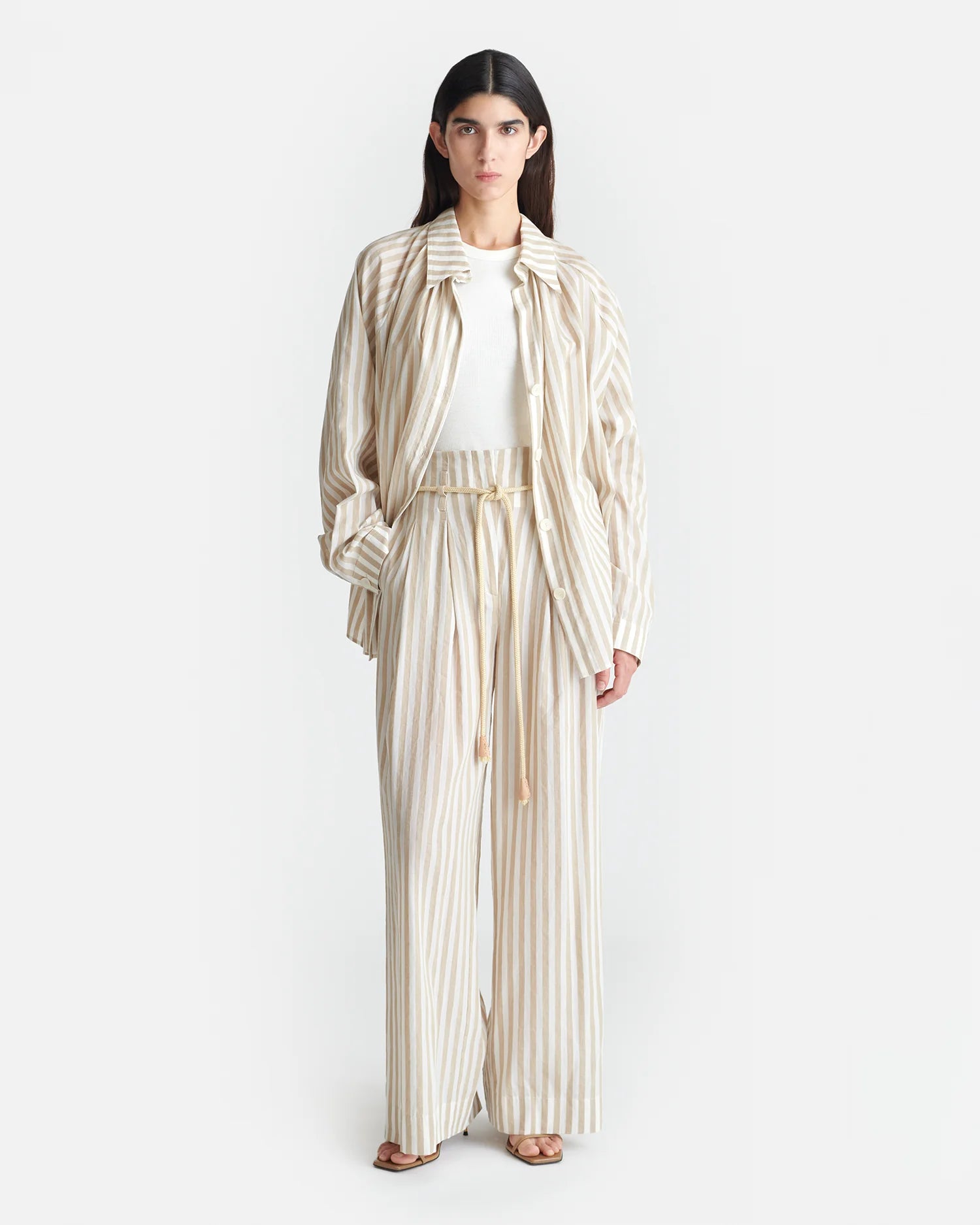 Nanushka Nevada Striped Belted Linen Pants - Beige/White