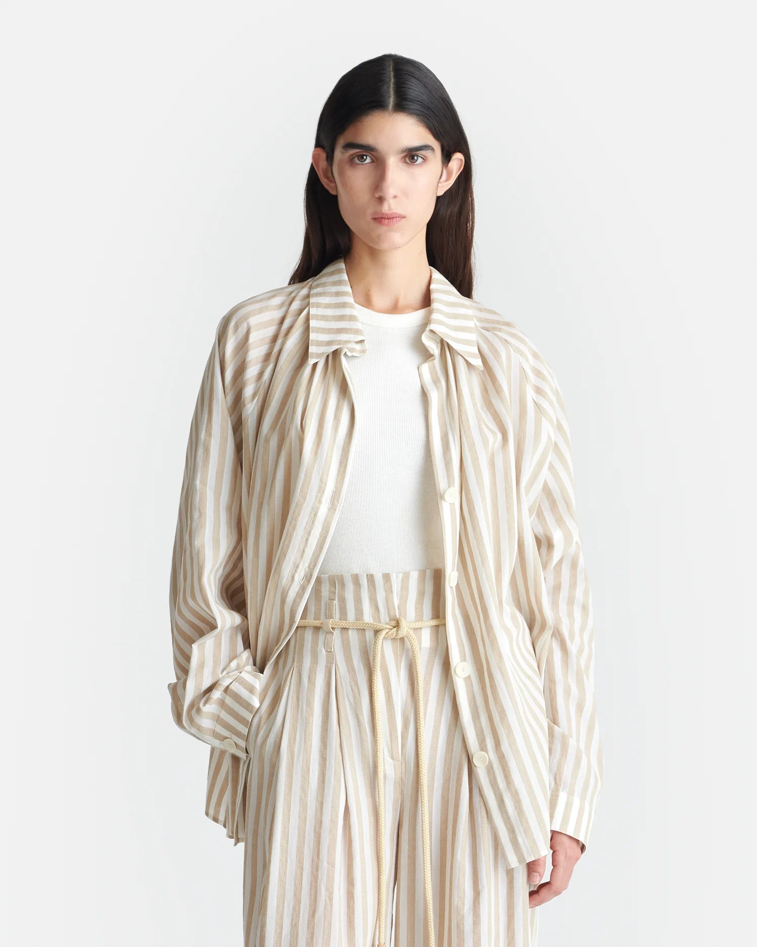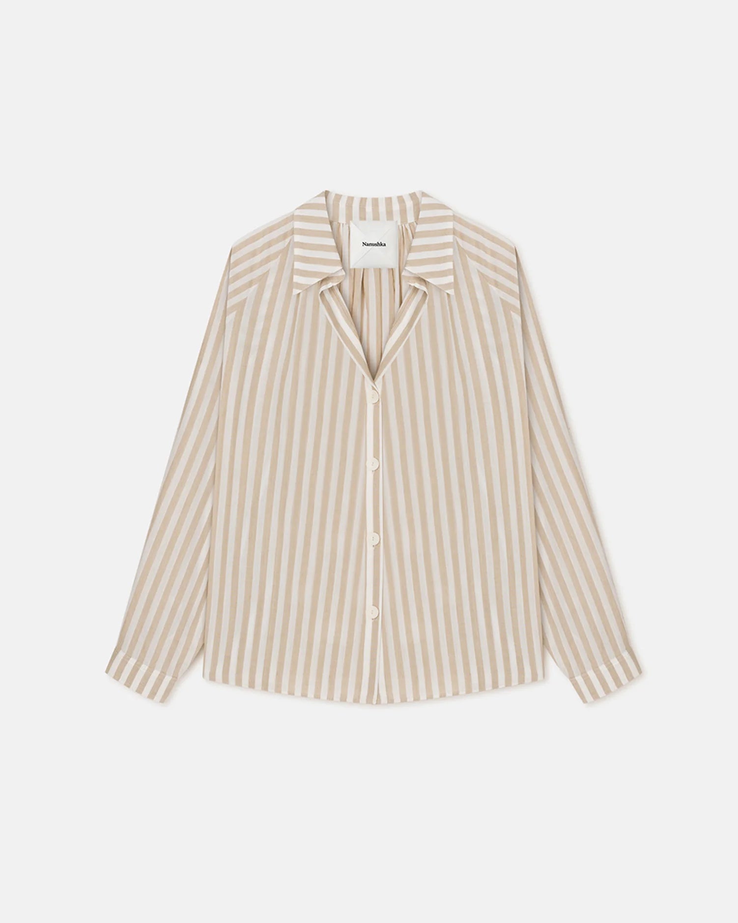 Nanushka Ada Striped Linen Shirt - Beige/White