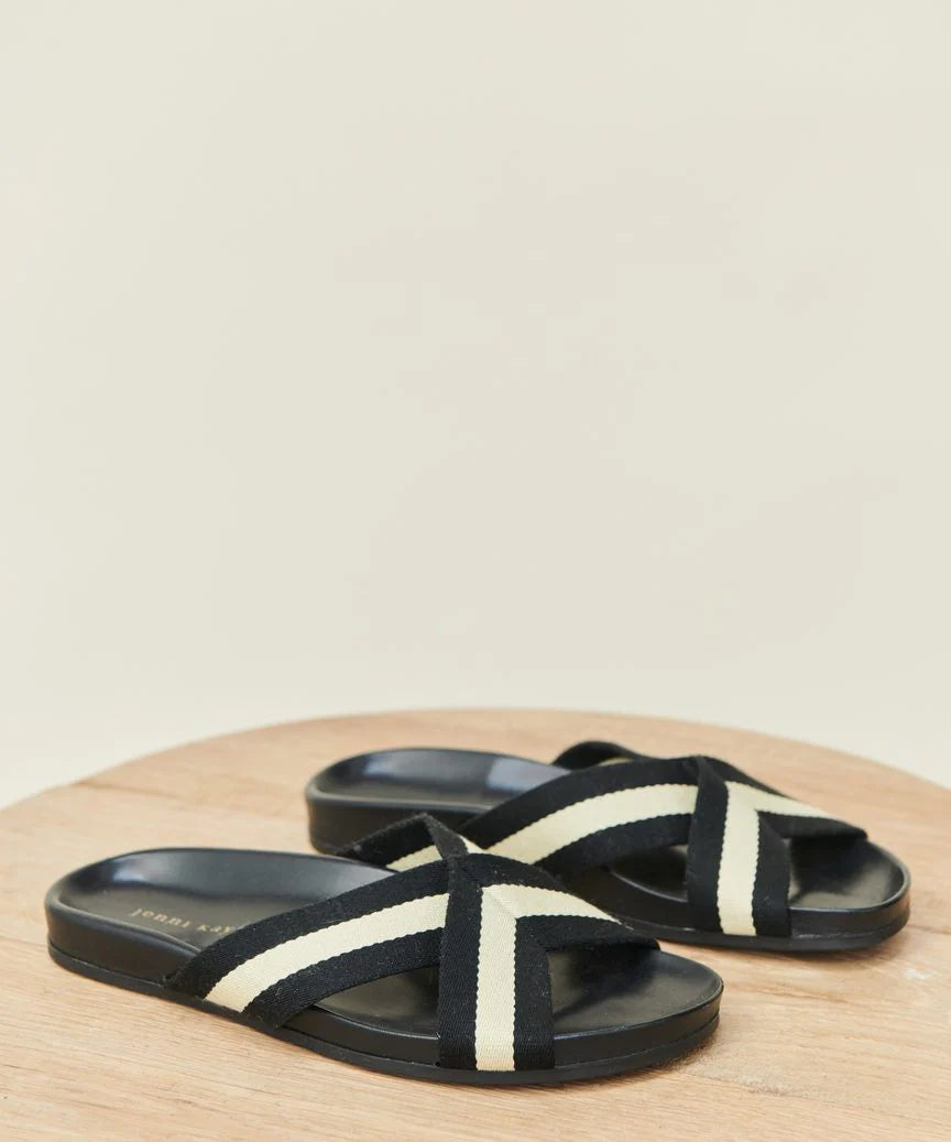 Jenni Kayne Cotton Crossover Sandal - Black Stripe
