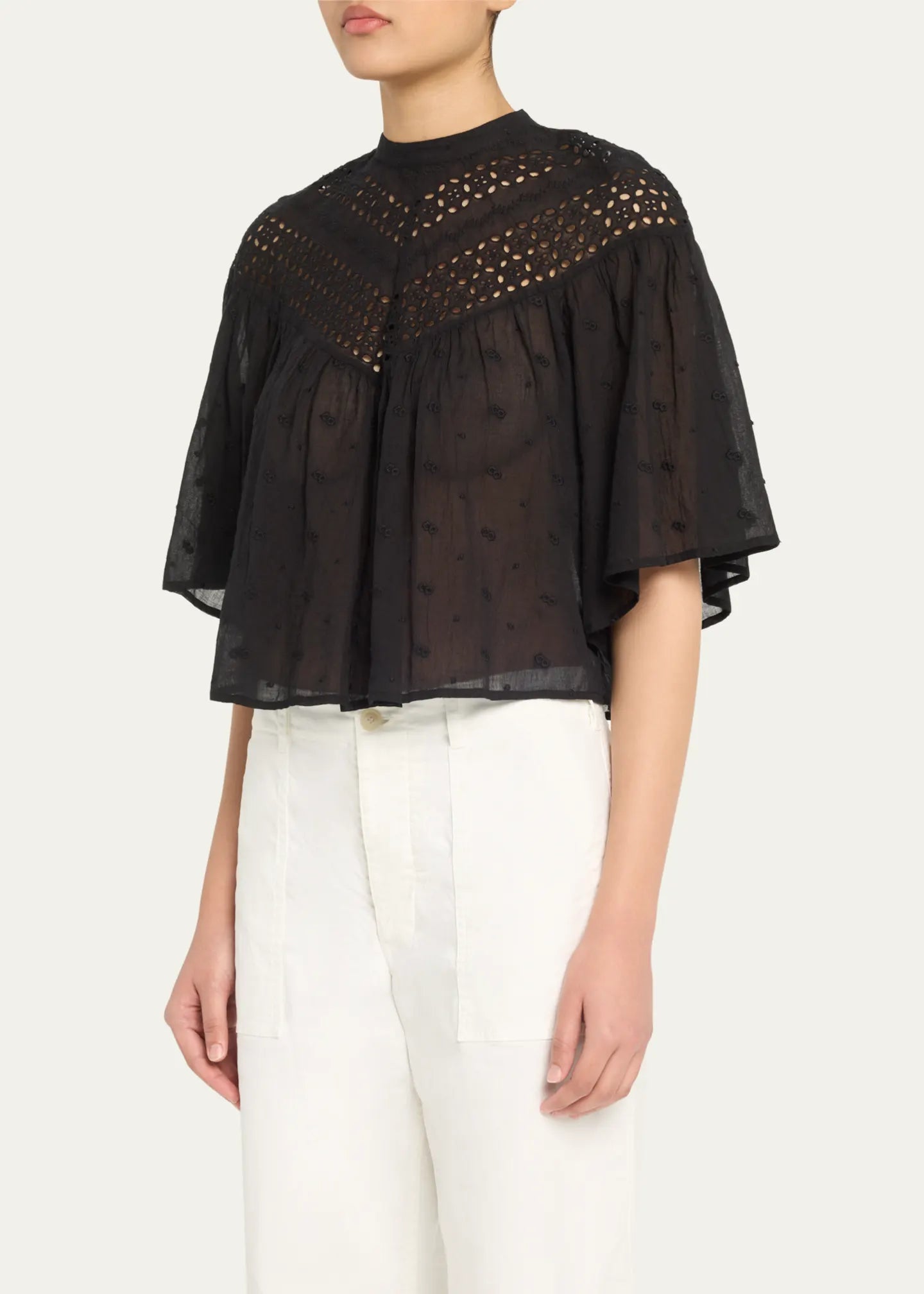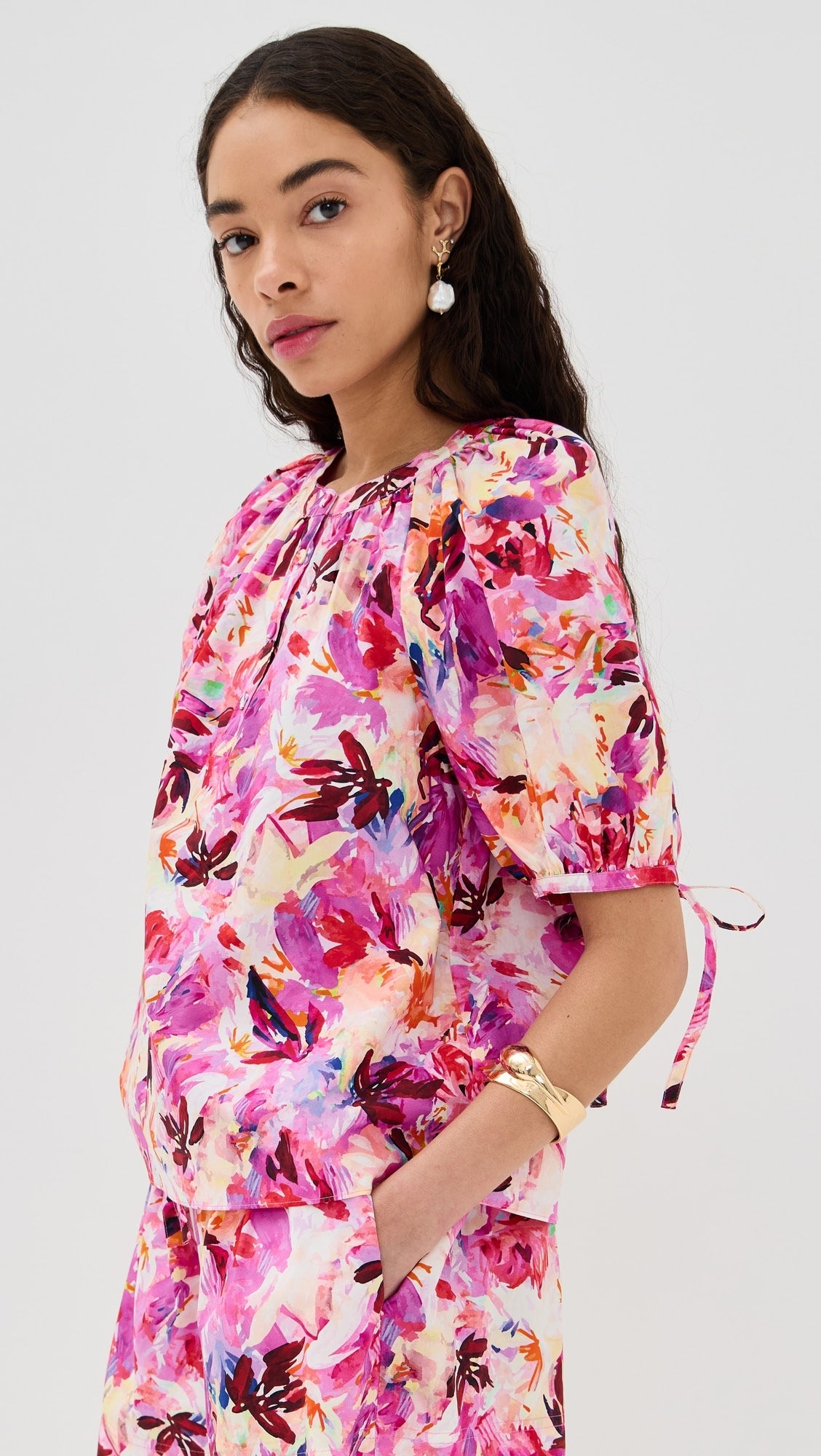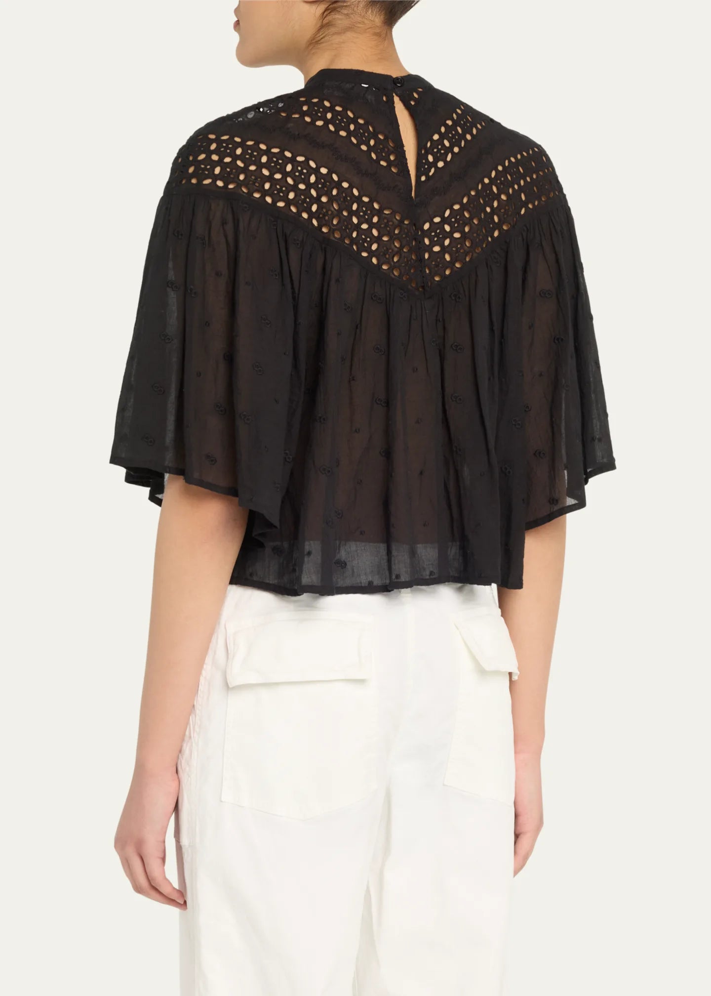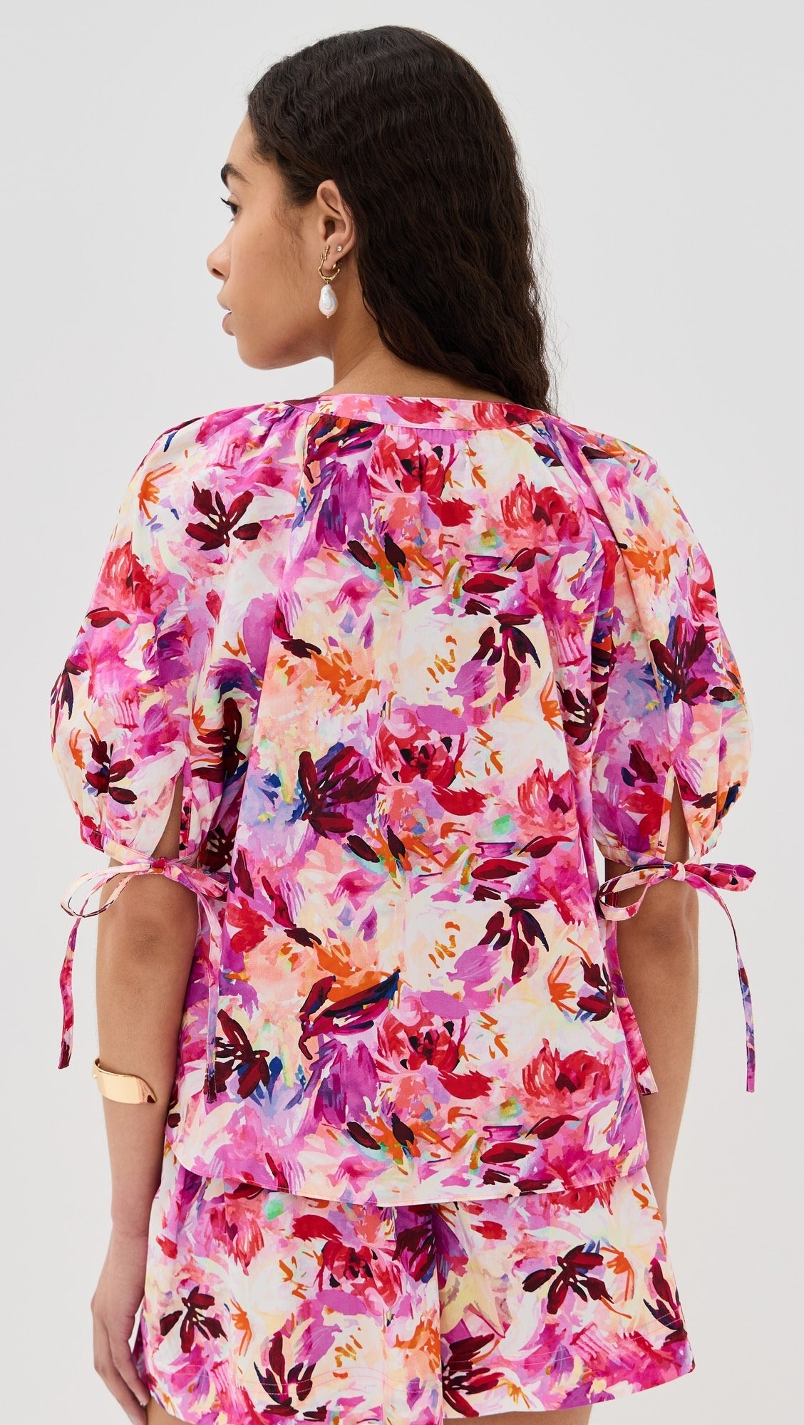 Cara Cara Linen Claudine Top - Terra Light Blue
