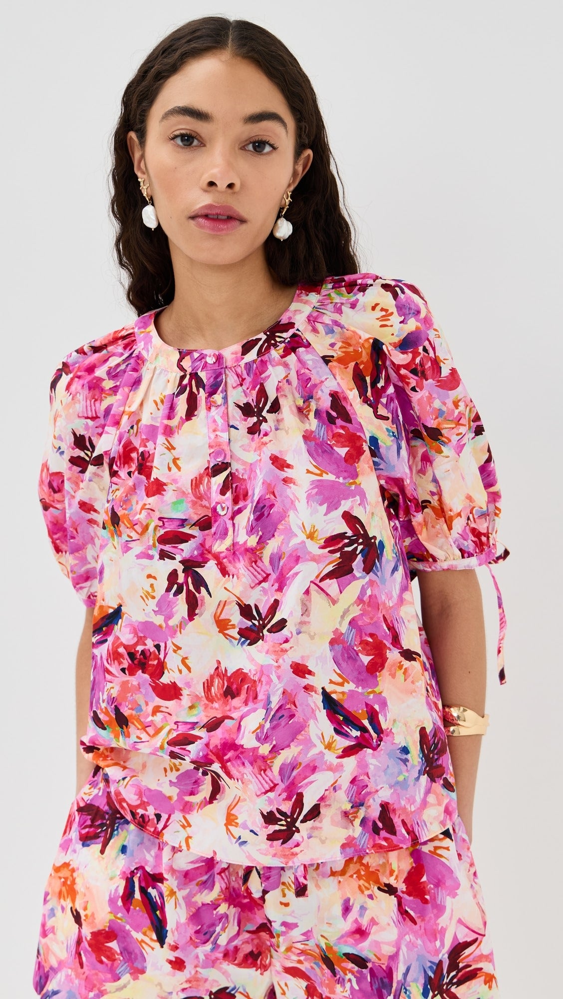 Clare V. Baseball Hat Embroidered Californie - Light Pink w/ Fern