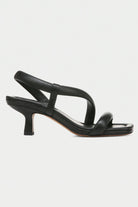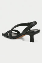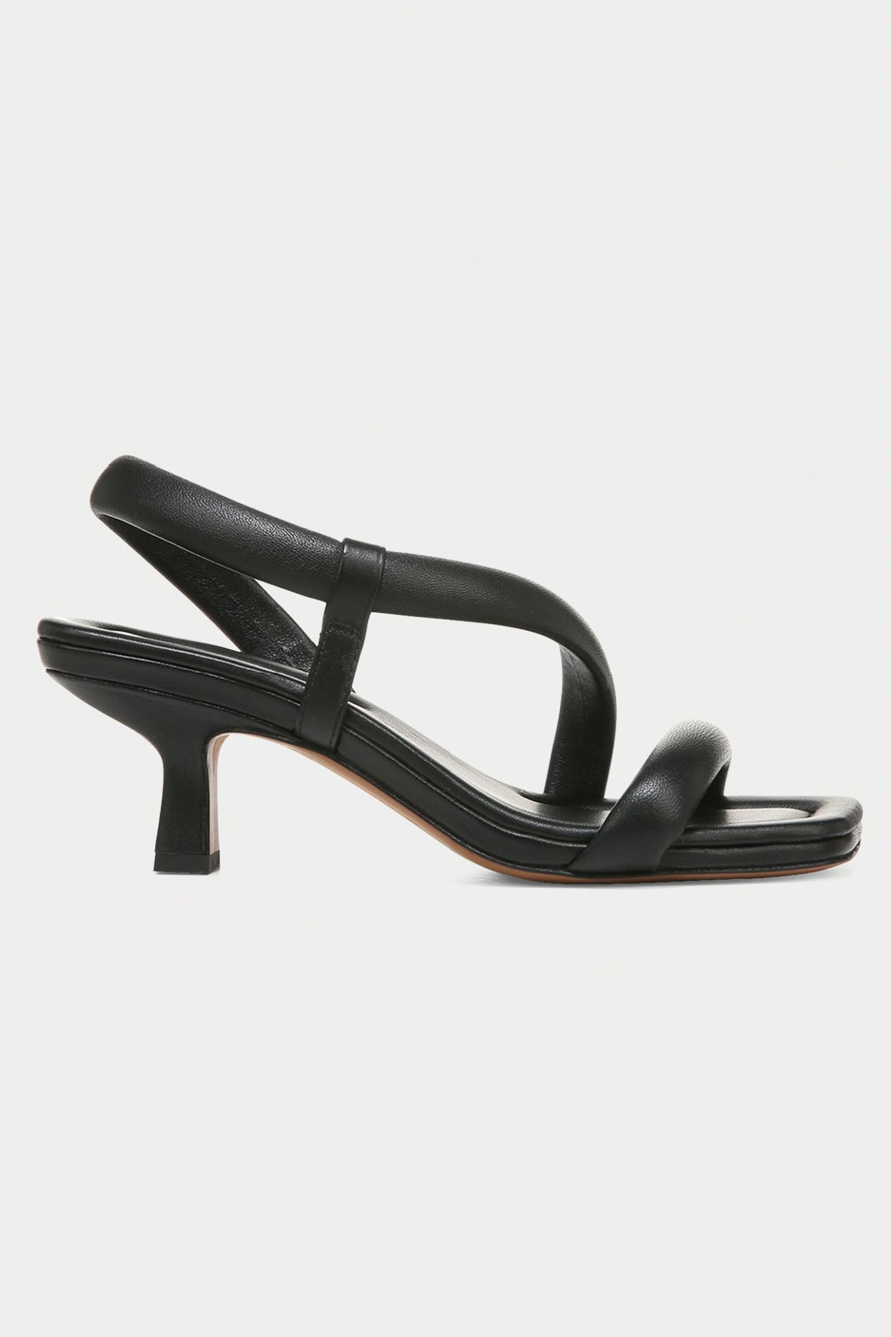 Plush leather straps of leather encircle the foot in our luxuriously pared-back kitten heel sandal. Tubular leather, featuring an asymmetric strappy design