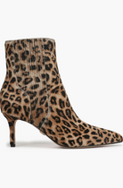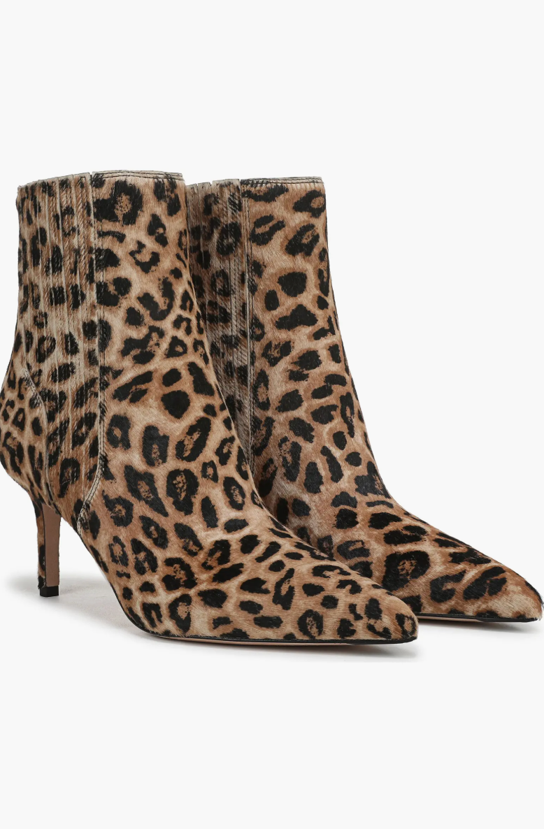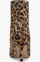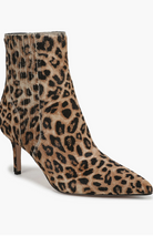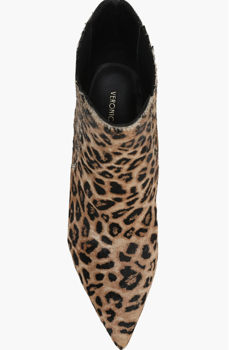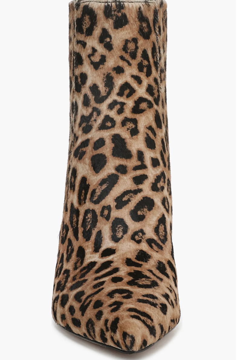 - Leopard-spotted calf hair adds a luxe vibe to a pointy-toe bootie that's destined for the spotlight.