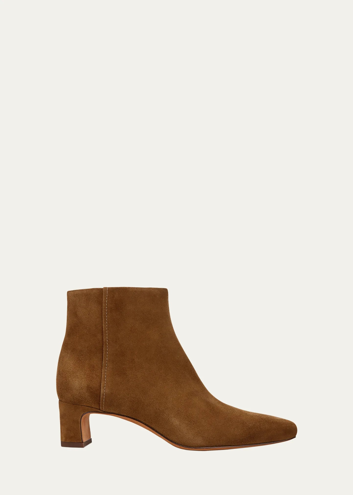 - Vince "Silvana" essential suede ankle booties with a sleek silhouette and exceptionally comfortable, plush foam footbed.