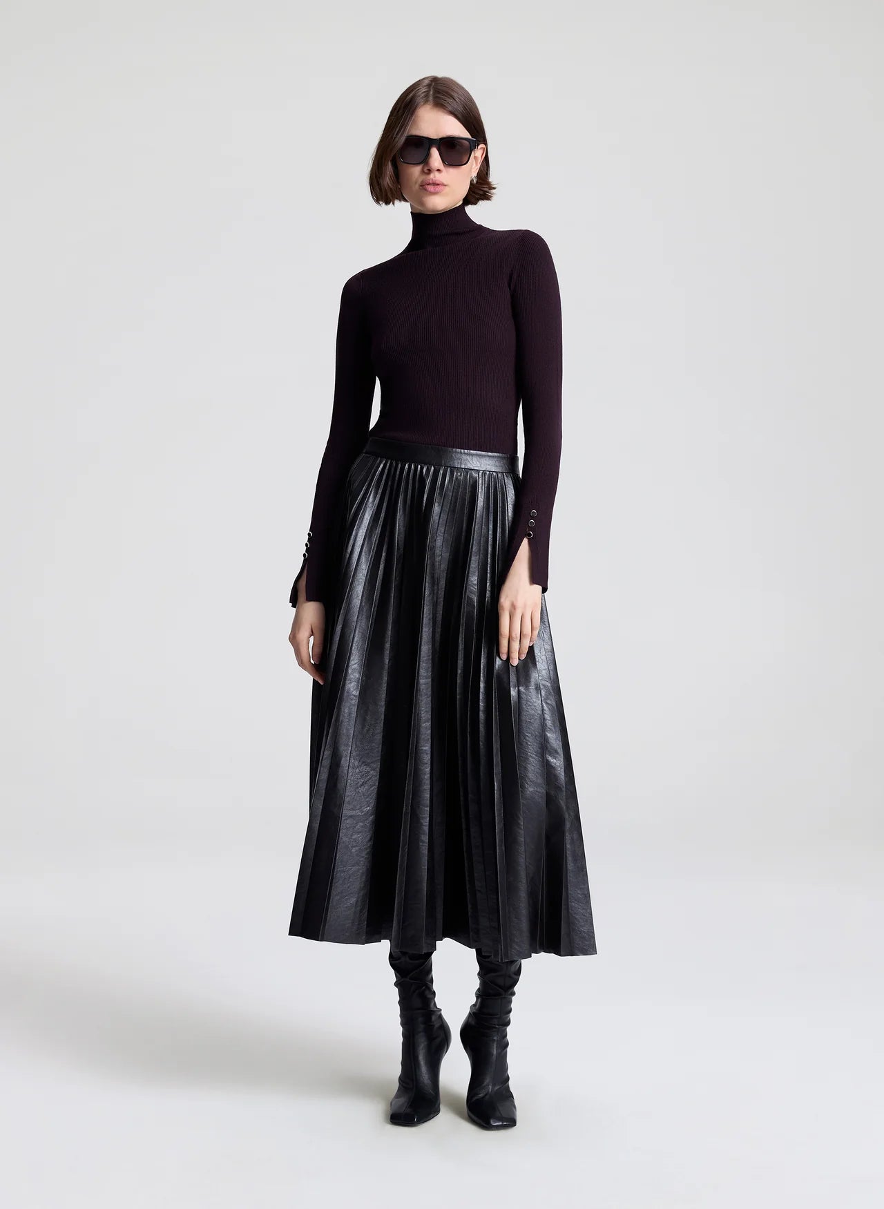 ALC Etta Vegan Leather Midi Skirt - Deepest Brown
