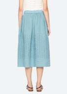 The Violet skirt features pintuck detailing, an elasticized waistband, and a breezy midi silhouette. Paired with the Violet tank, it creates a fresh, effortless spring outfit.