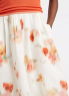 Our airy, semi-sheer skirt showcases an abstract blurred poppy print and is finished with a gathered waist for added dimension.