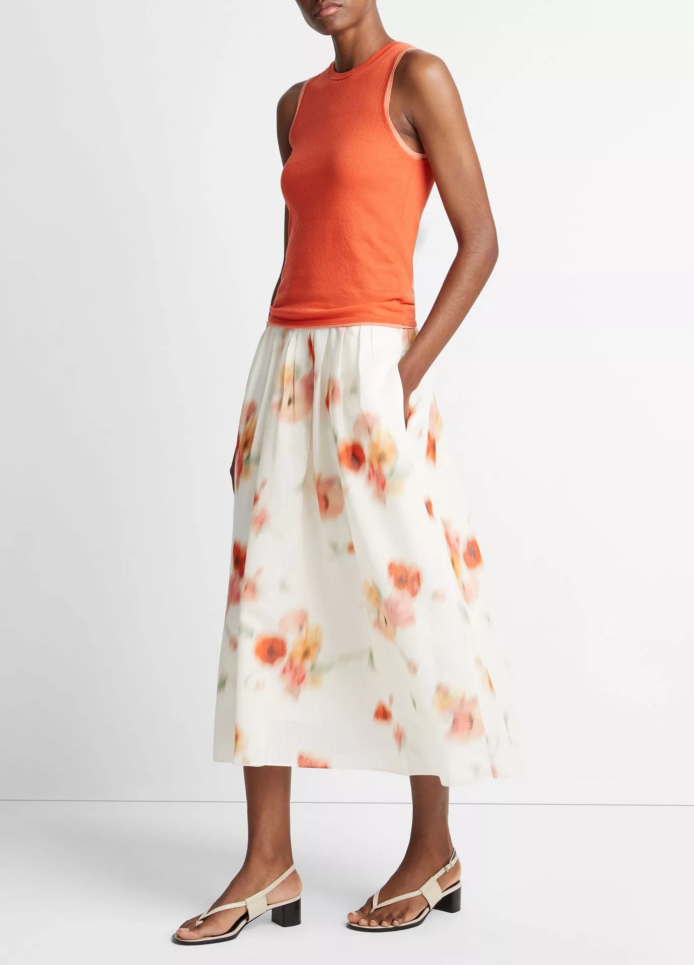 Vince Poppy Blur Gathered Skirt - Cream Dusk