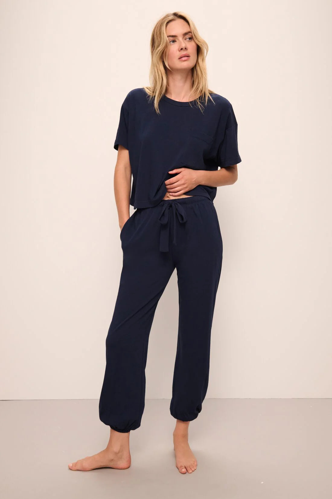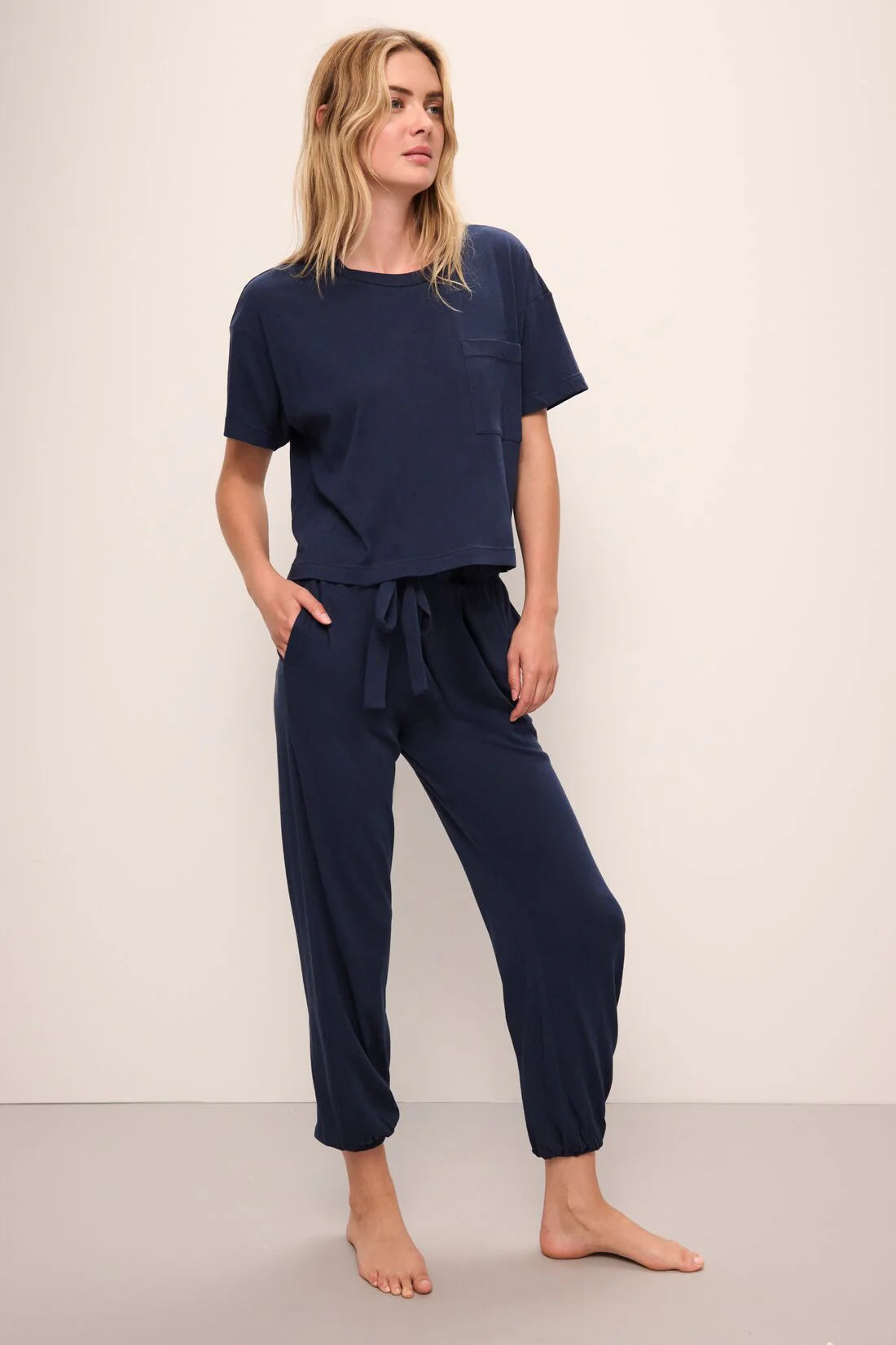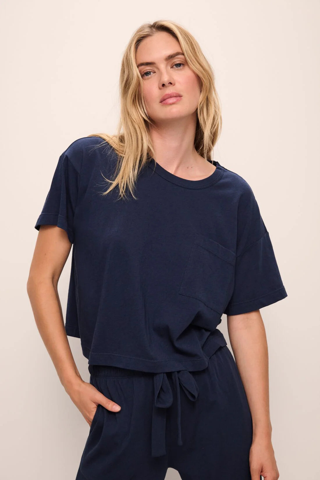 Eberjey Aloe Infused Cotton Short Sleeve Tee - Navy
