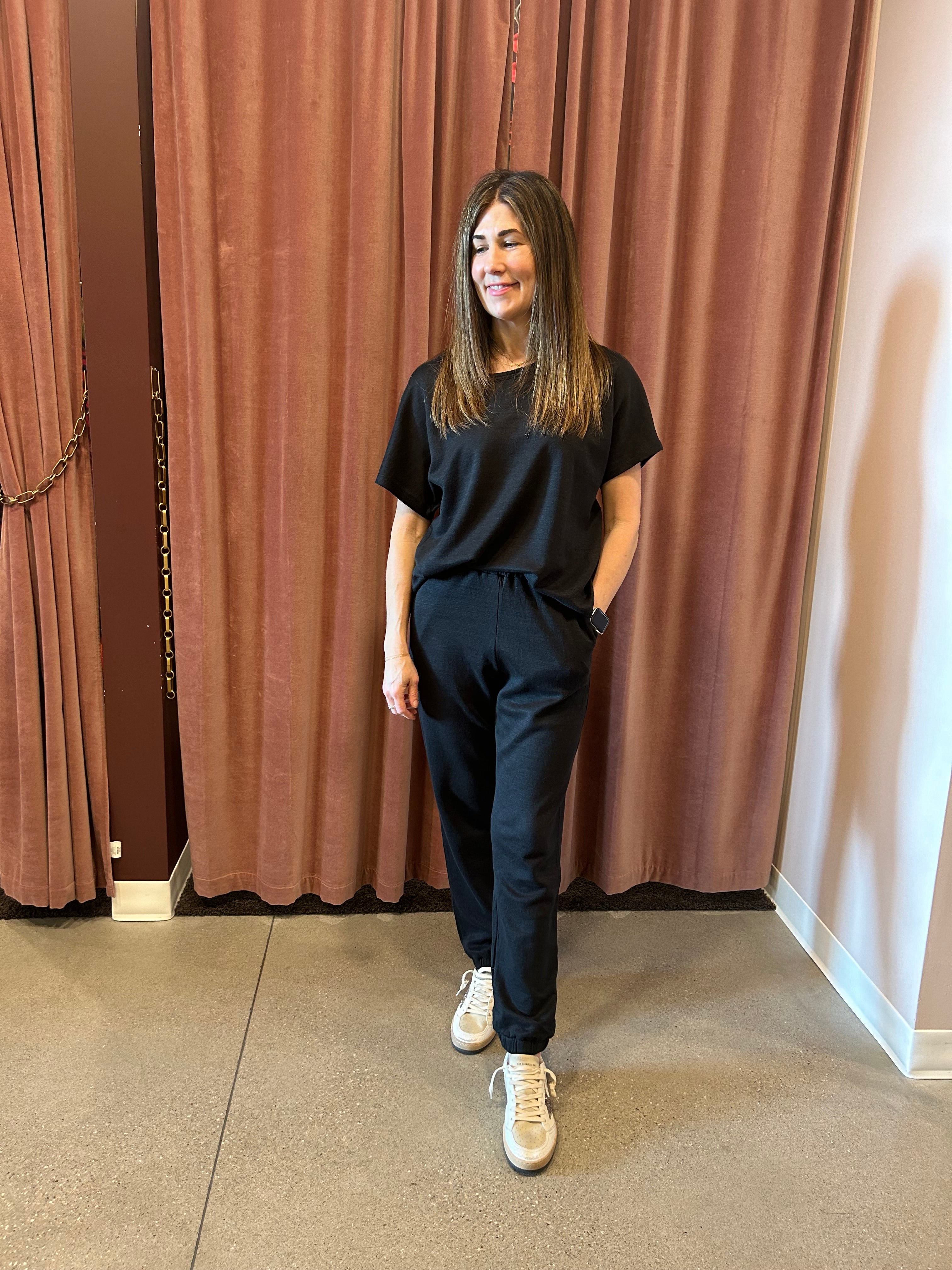 Majestic Filatures Double Face Linen S/S Semi Relaxed Crew Neck - Noir