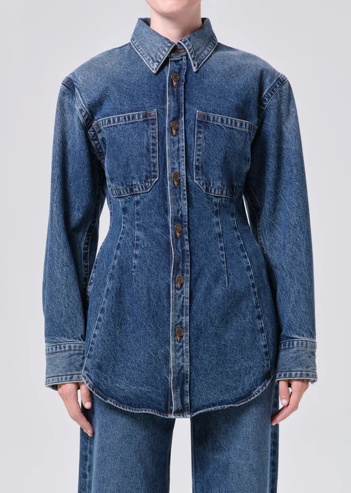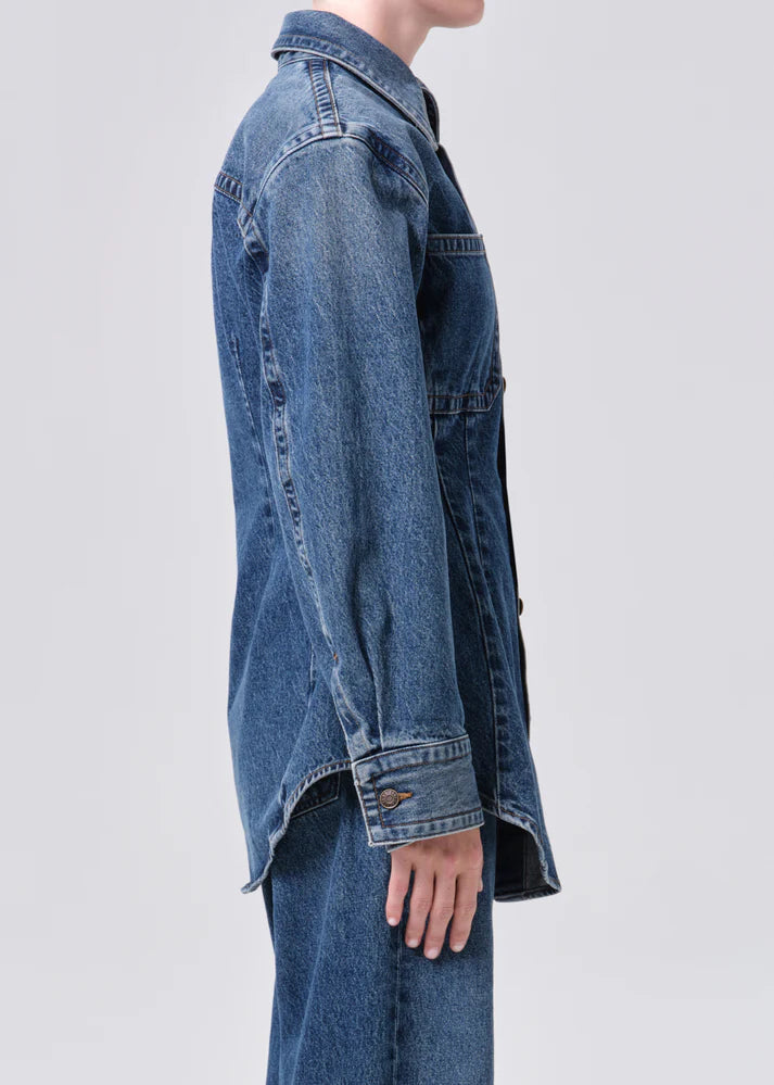 Agolde Wilma Denim Jean Shirt - Form (Marbled Dark Indigo)