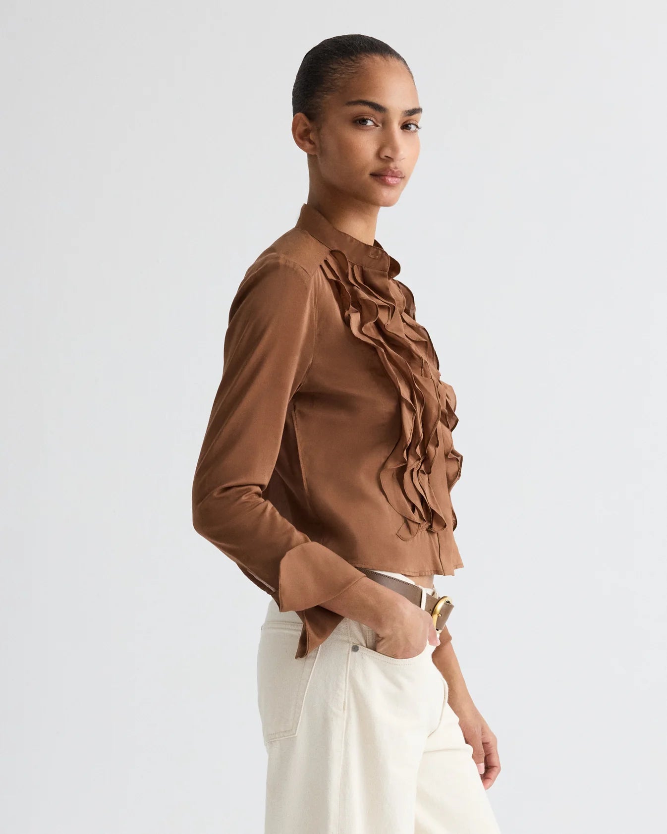 Nili Lotan GAIA SILK SHIRT - Cognac